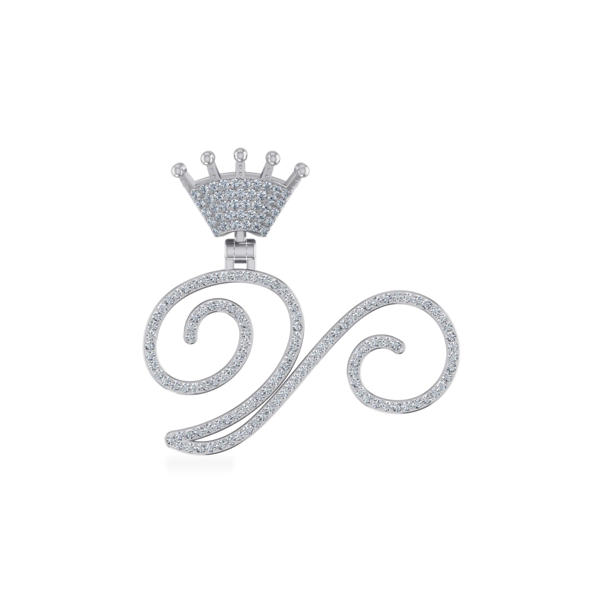 10K White Gold Round Diamond Crown V Letter Initial Pendant 1/4 Cttw