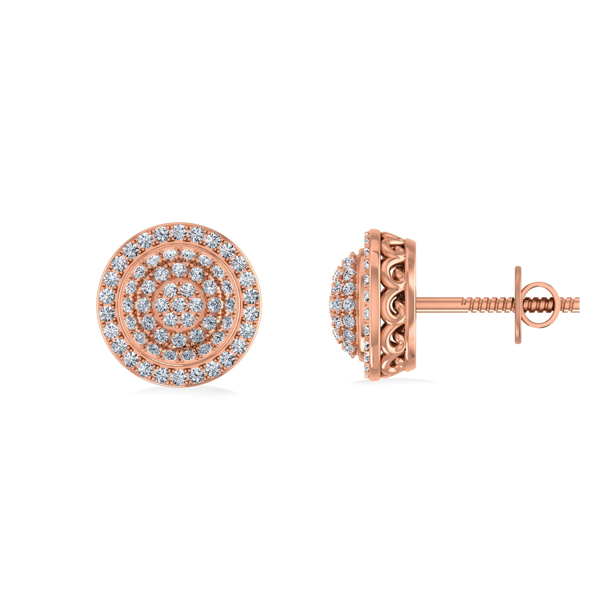 10K Rose Gold Round Diamond Designer Halo Mens Stud Earring 1/3 Cttw