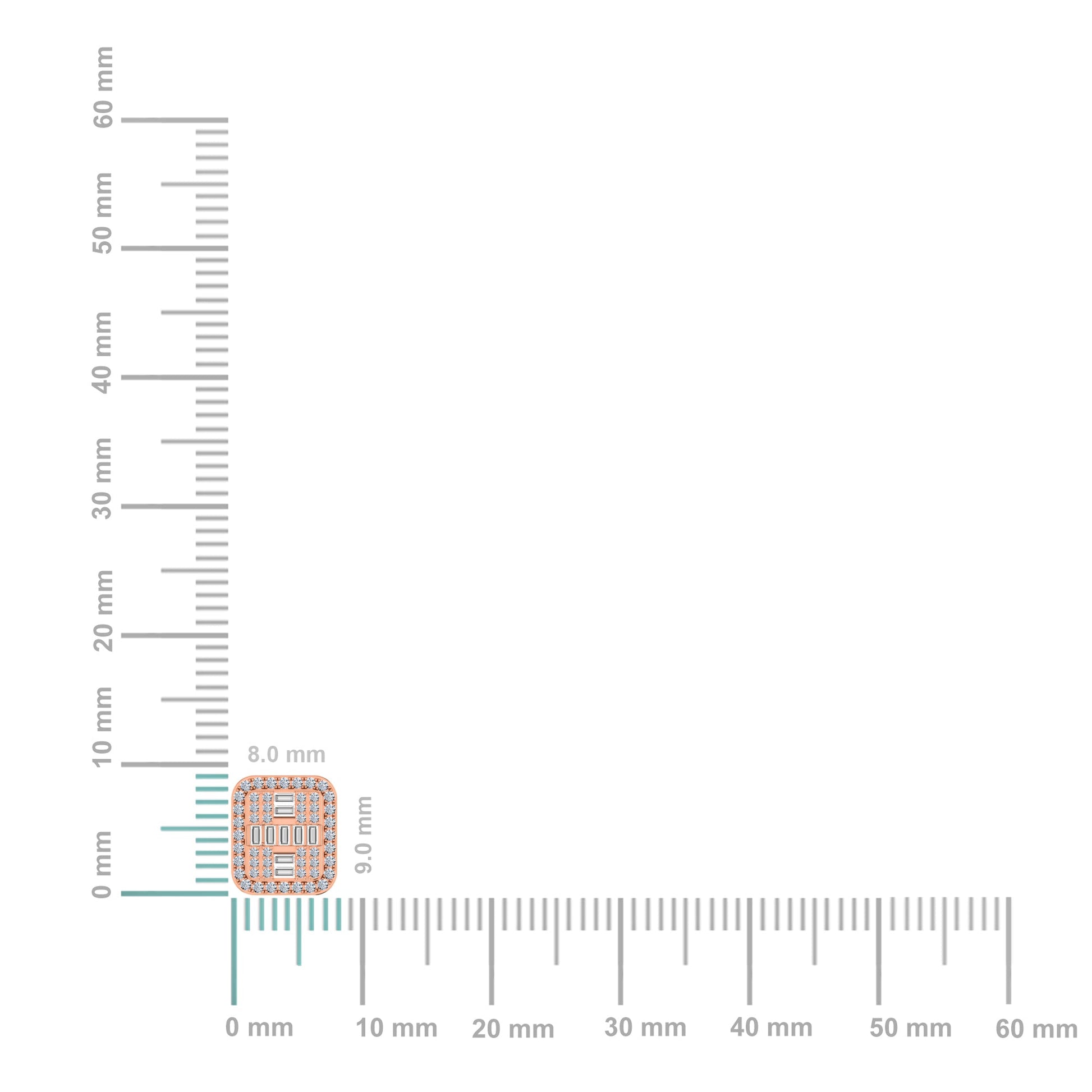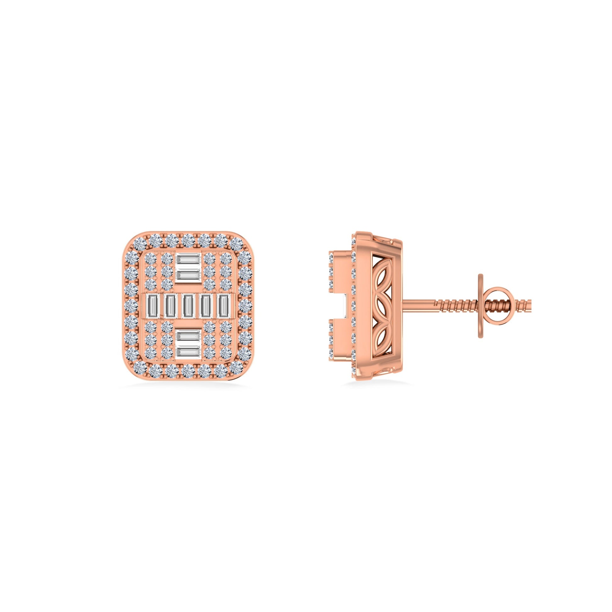 10K Rose Gold Round Baguette Diamond Square Shape Designer Mens Stud Earring 3/8 Cttw