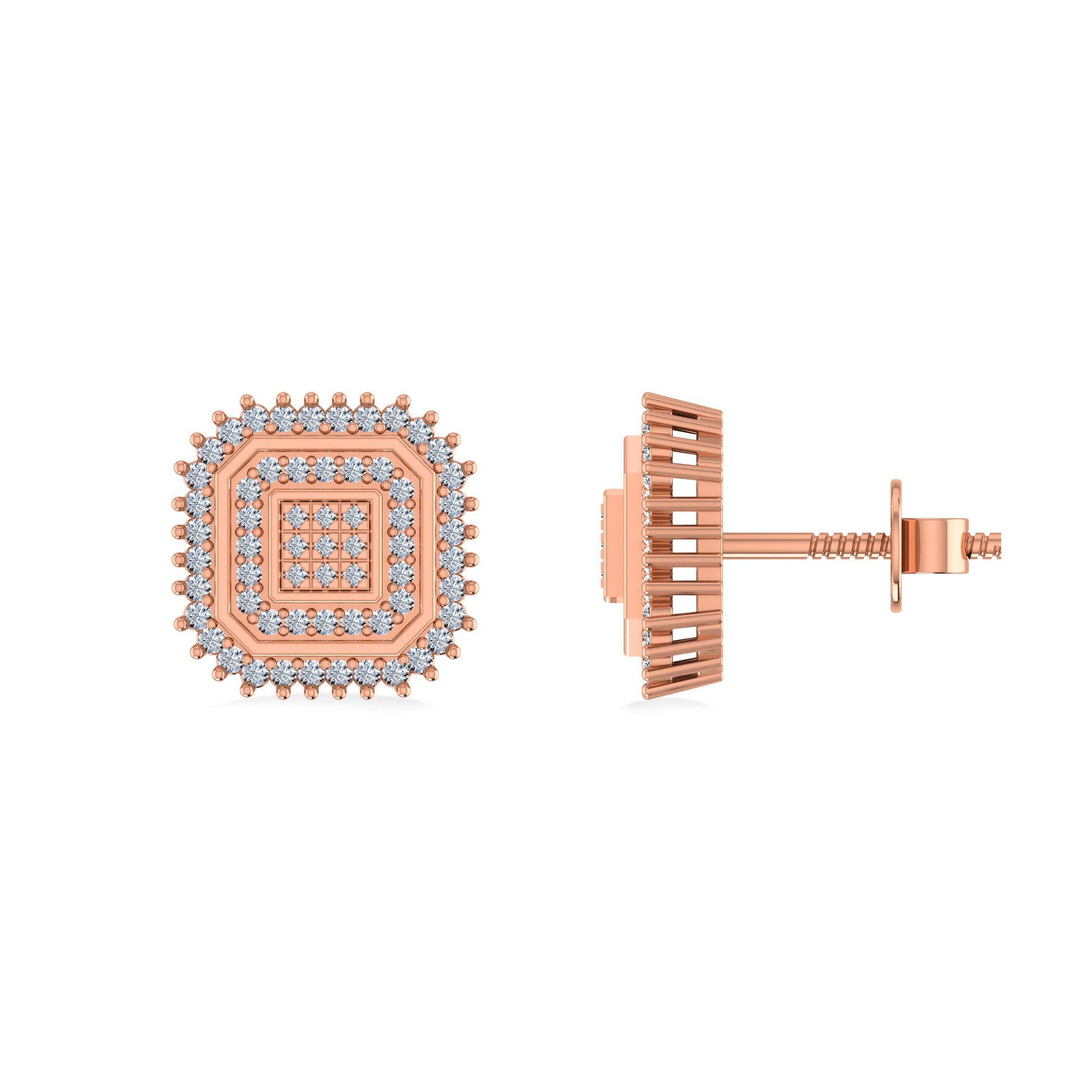 10K Rose Gold Round Diamond Square Shape Designer Mens Stud Earring 1/5 Cttw
