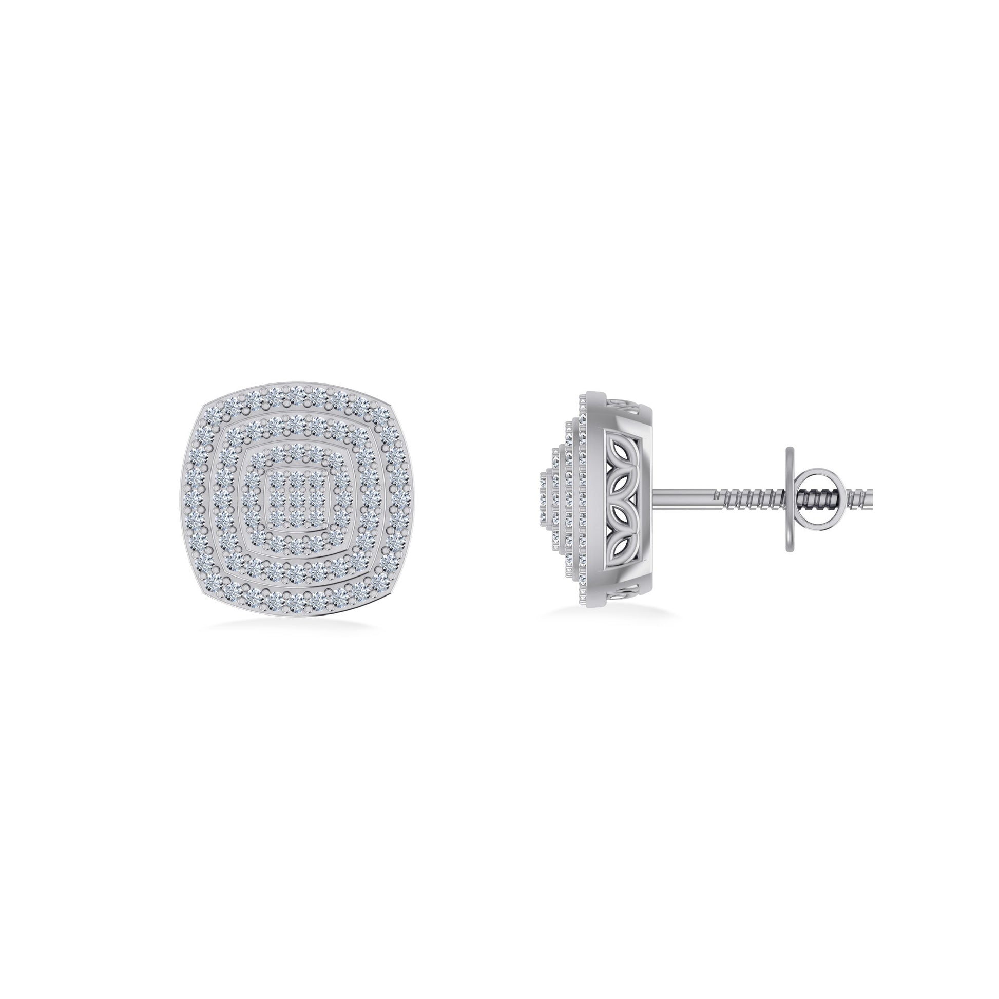 10K White Gold Round Diamond Square Shape Designer Mens Stud Earring 1/3 Cttw