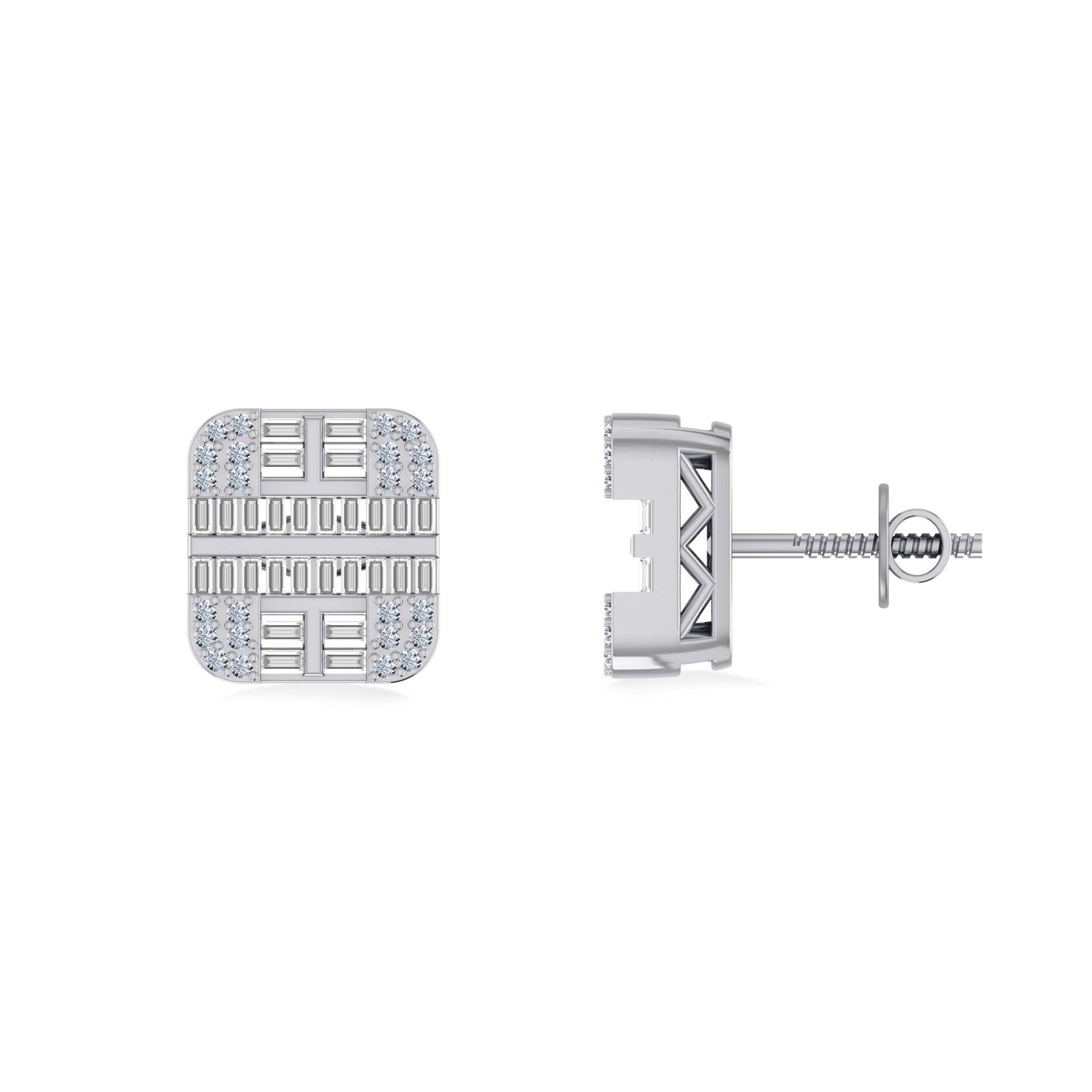 10K White Gold Round Diamond Square Shape Designer Mens Stud Earring 1/3 Cttw