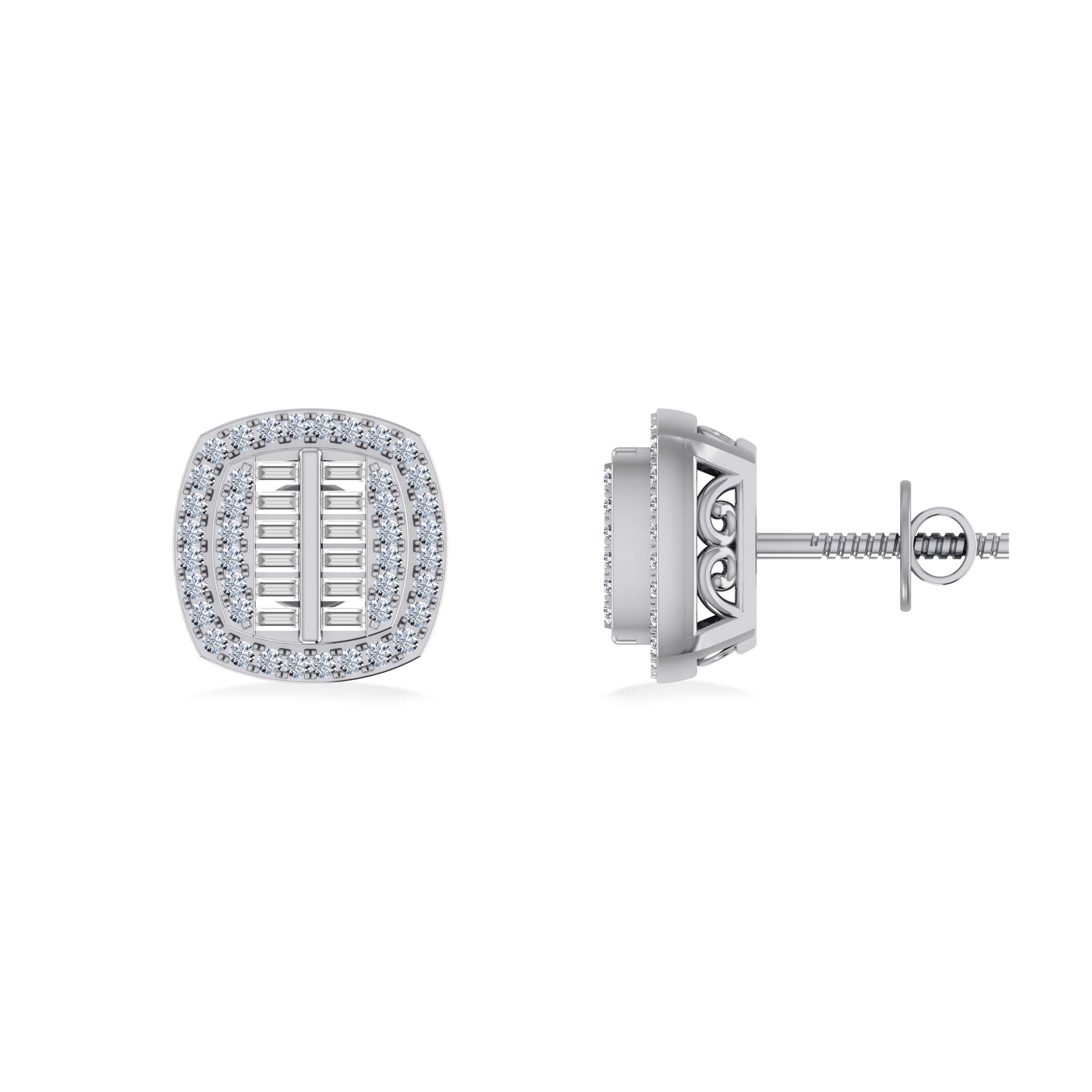 10K White Gold Round Baguette Diamond Square Shape Designer Mens Stud Earring 1/3 Cttw