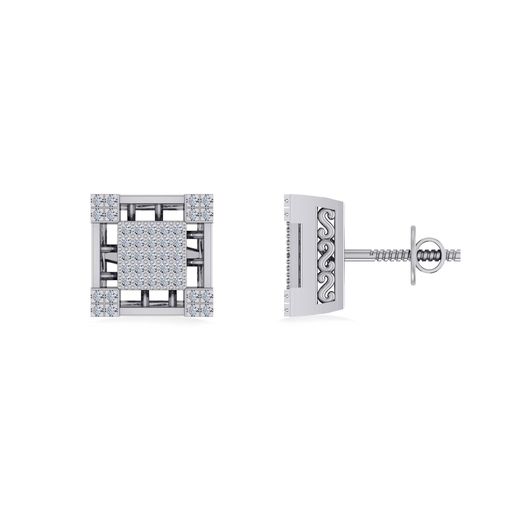 10K White Gold Round Baguette Diamond Square Shape Designer Mens Stud Earring 3/8 Cttw