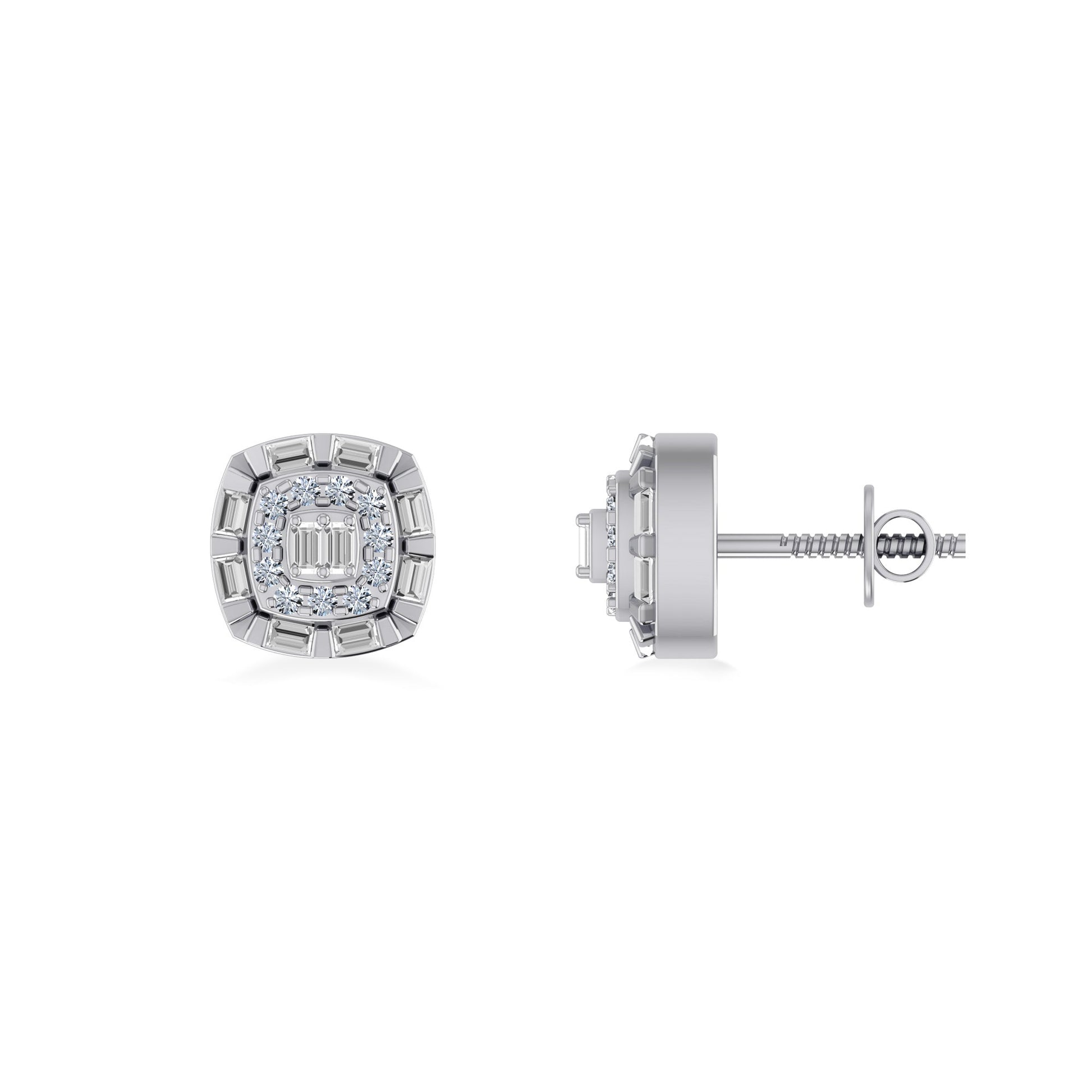 10K White Gold Round Baguette Diamond Square Designer Earring 1/4 Cttw