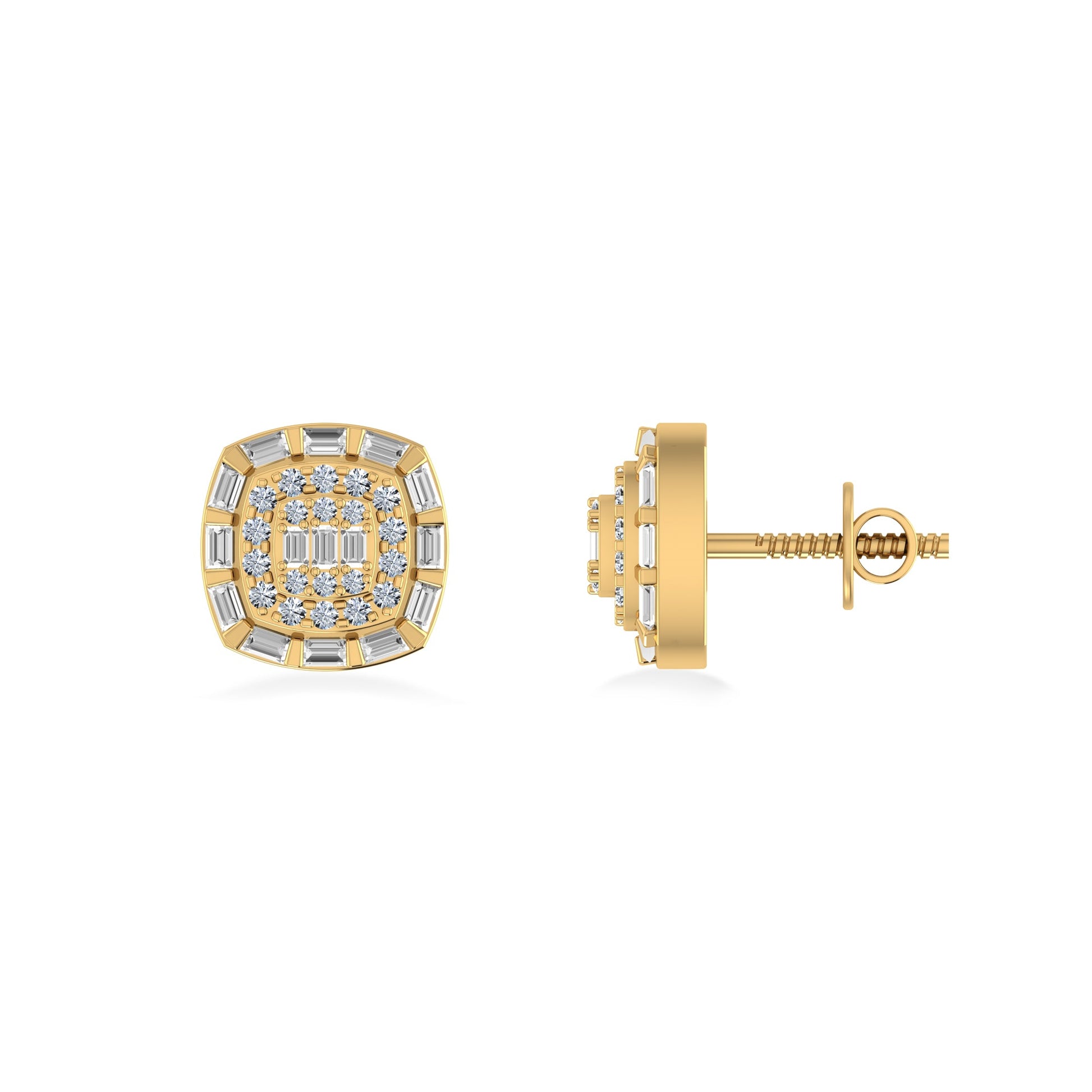 10K Yellow Gold Round Baguette Diamond Square Designer Earring 1/2 Cttw