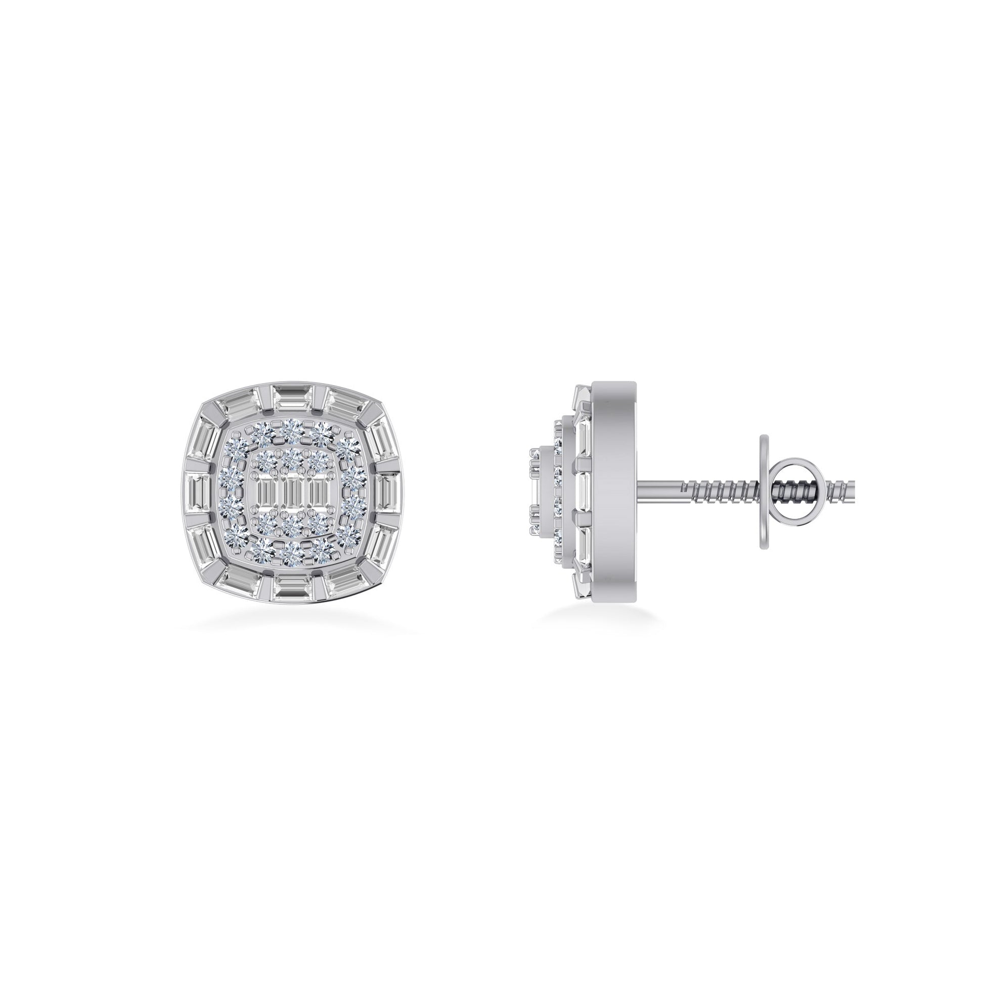 10K White Gold Round Baguette Diamond Square Designer Earring 1/2 Cttw
