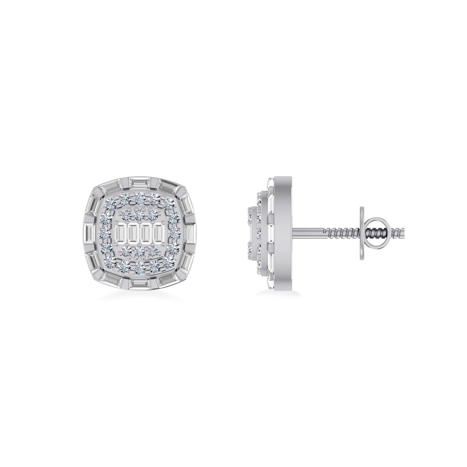 10K White Gold Round Baguette Diamond Square Designer Earring 3/4 Cttw