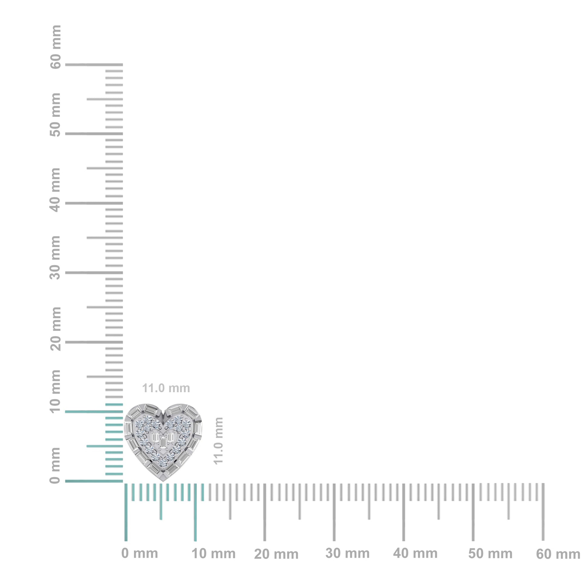 10K White Gold Round Baguette Diamond Heart Designer Earring 5/8 Cttw