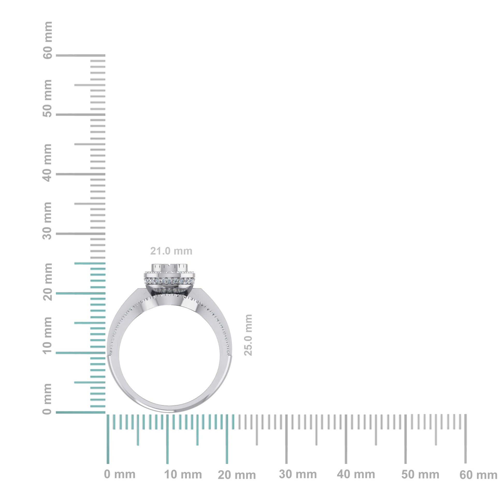 10K White Gold Round Baguette Diamond Pear Shape Sz 7 Designer Ladies Ring 3/4 Cttw