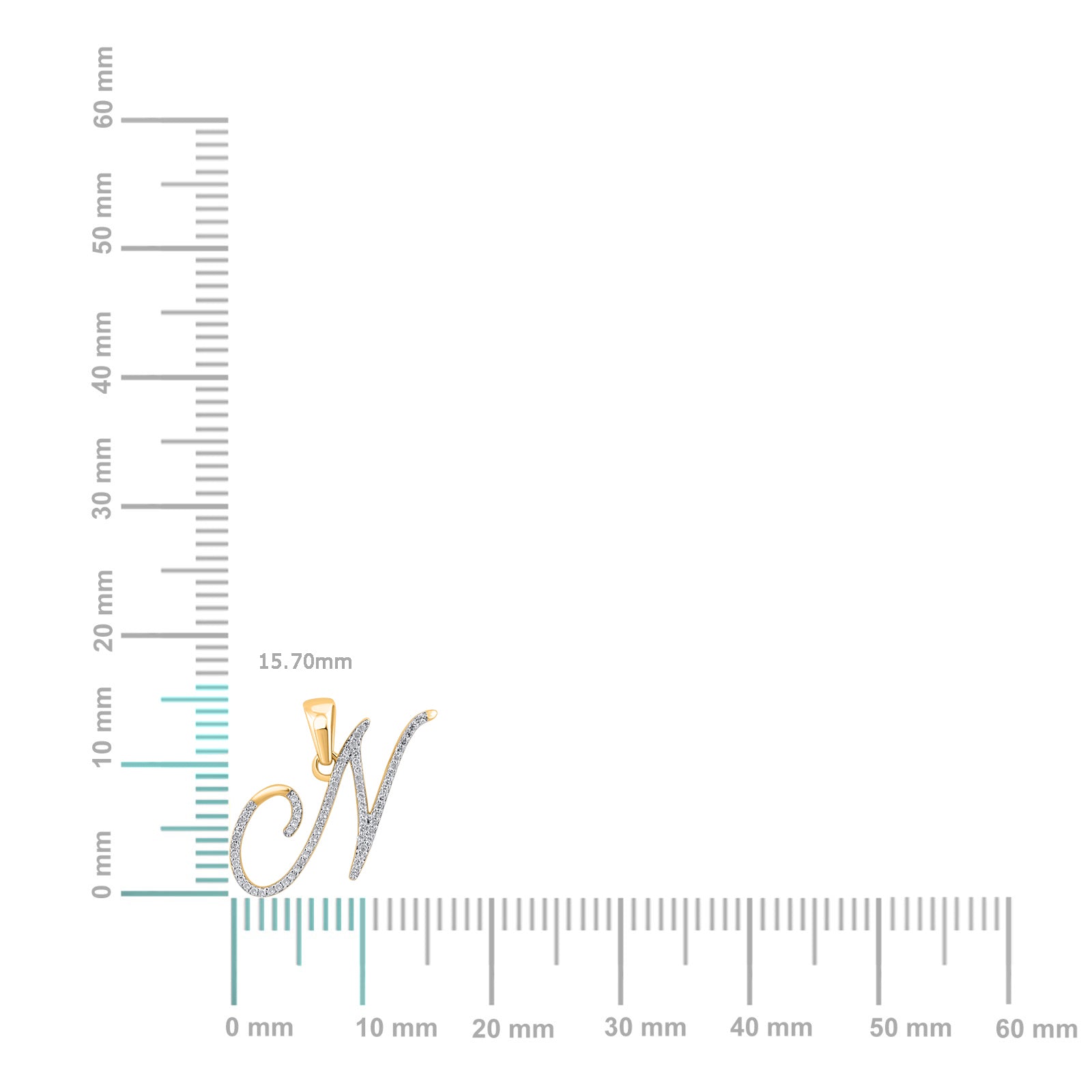10K Yellow Gold Round Diamond N Letter Initial Pendant 1/8 Cttw