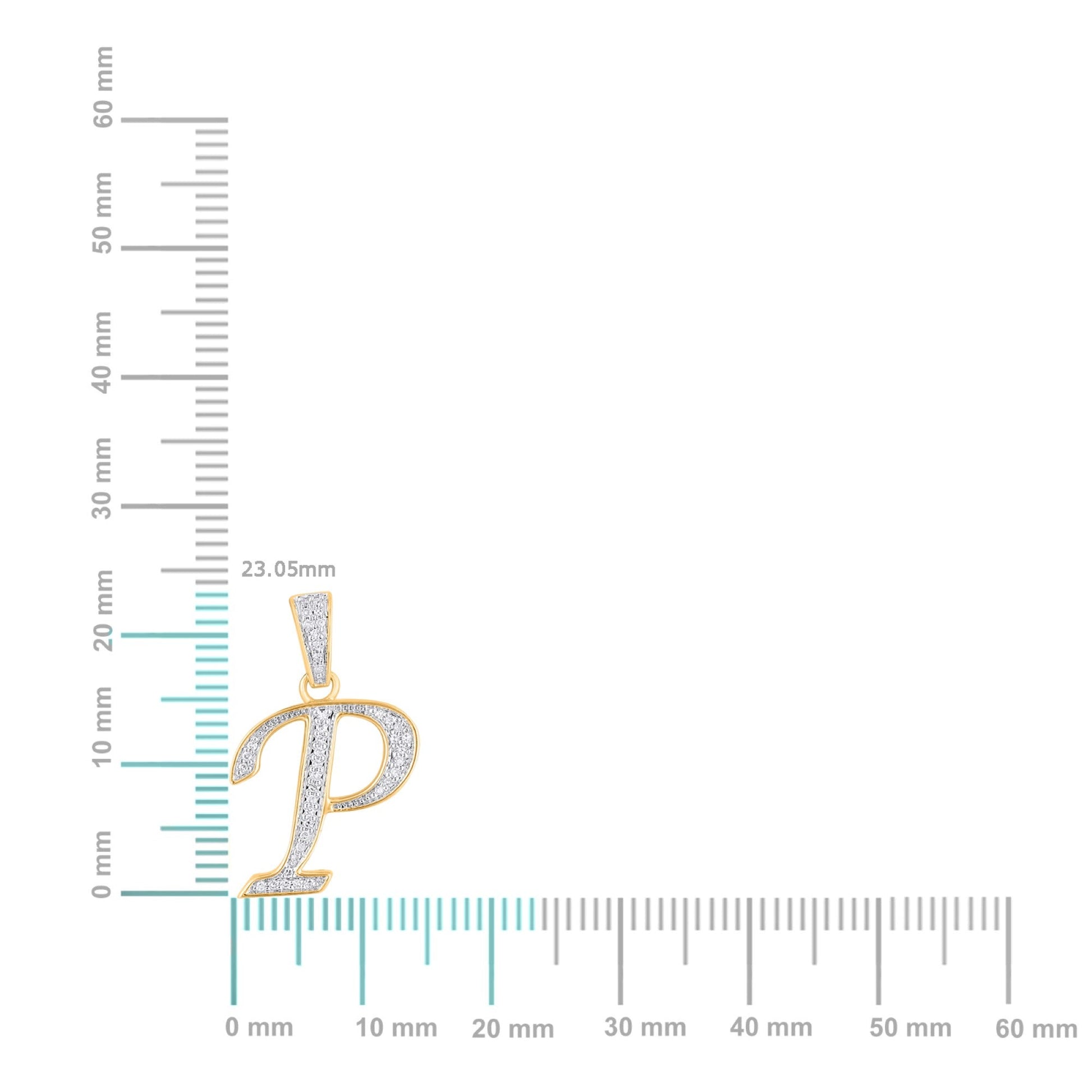 10K Yellow Gold Round Diamond P Letter Initial Pendant 1/10 Cttw