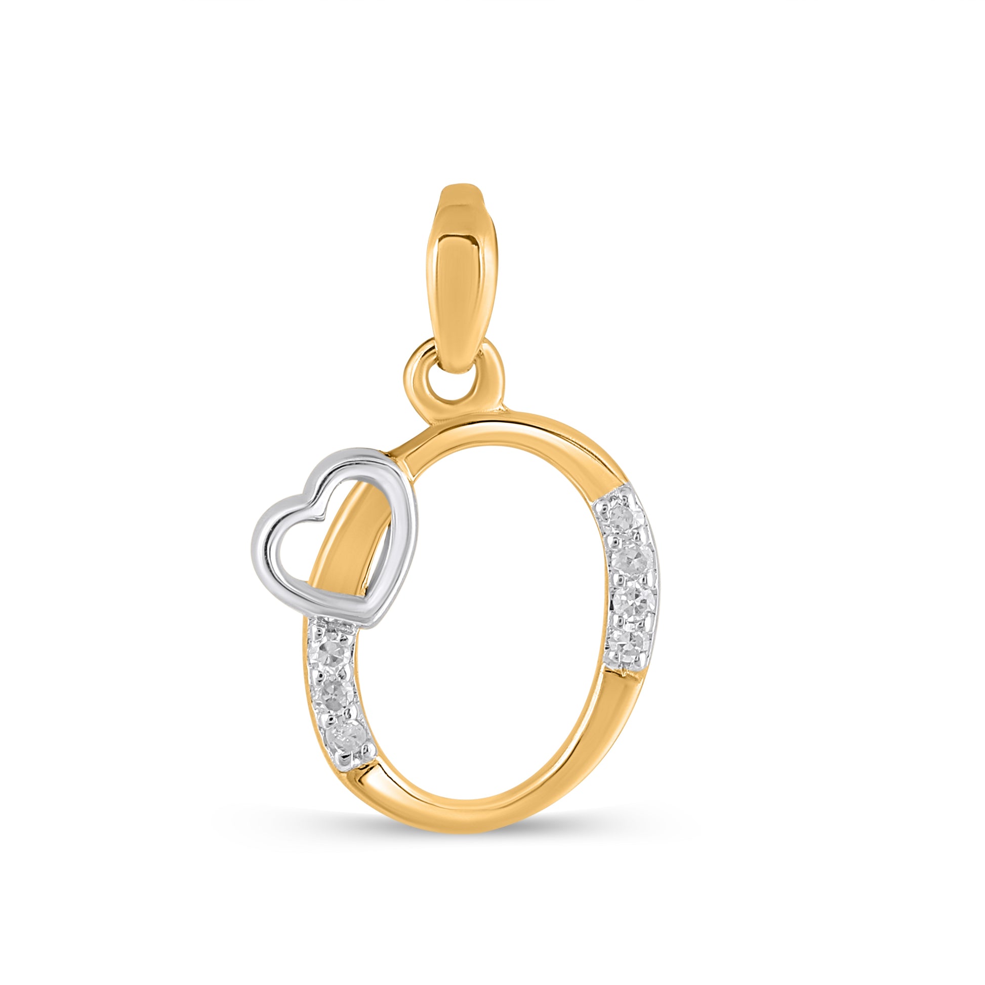 10K Yellow Gold Round Diamond O Letter Initial With Heart Pendant 1/10 Cttw