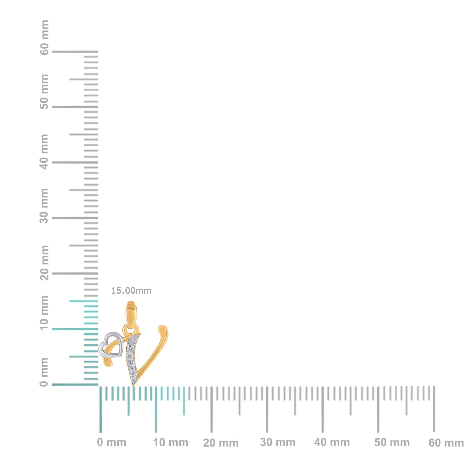 10K Yellow Gold Round Diamond V Letter Initial With Heart Pendant 1/10 Cttw