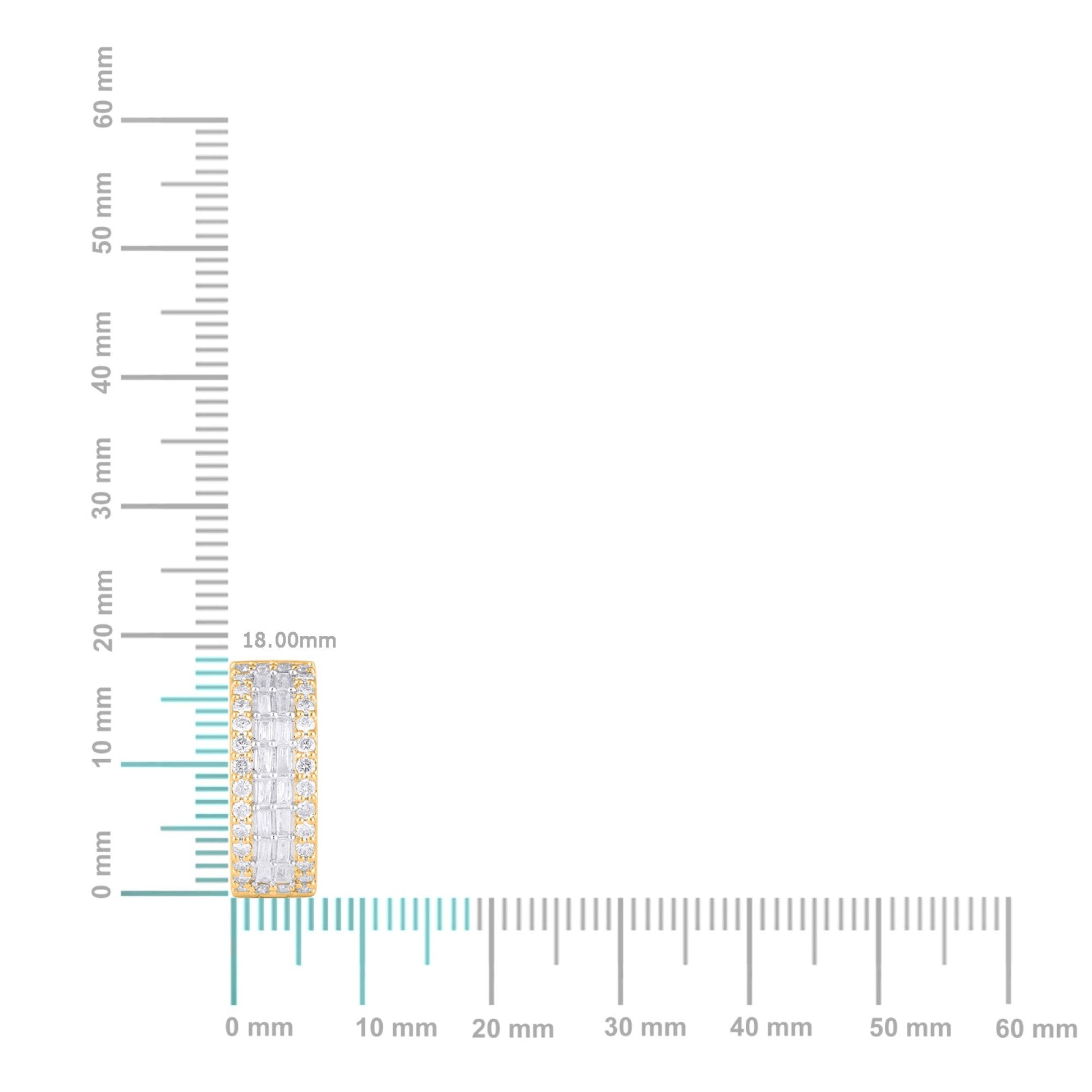 10K Yellow Gold Round Baguette Diamond 3 Row Designer Hoop Earring 1 Cttw