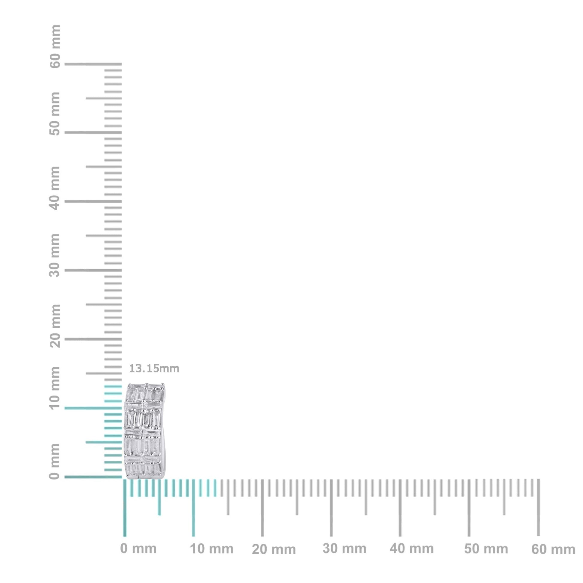 10K White Gold Baguette Diamond Designer Hoop Earring 3/4 Cttw