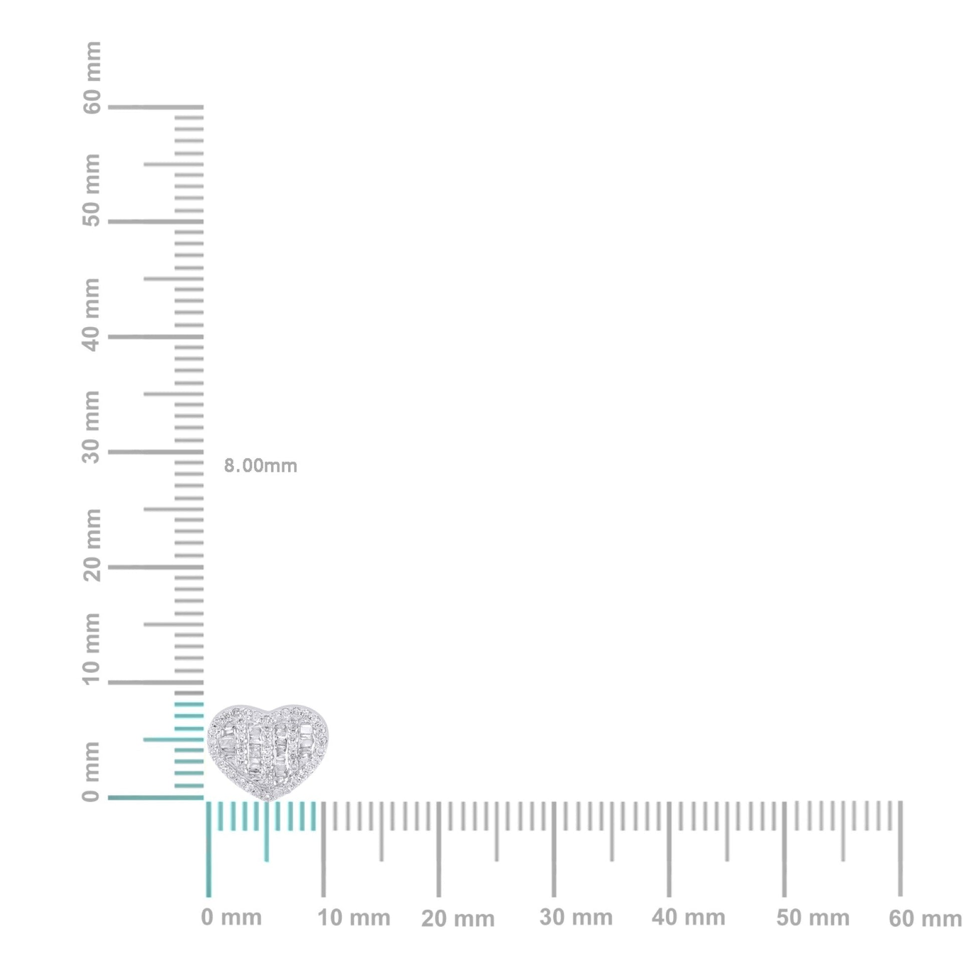 10K White Gold Round Baguette Diamond Heart Earring 1/3 Cttw