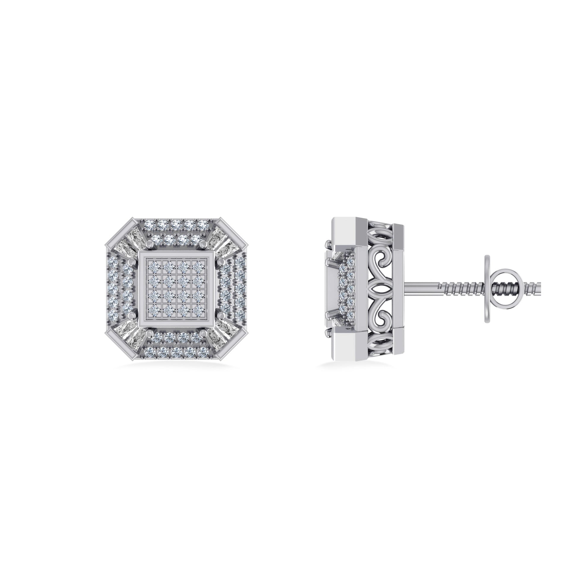 Sterling Silver Round Baguette Diamond Mens Designer Stud Earring 1/3 Cttw