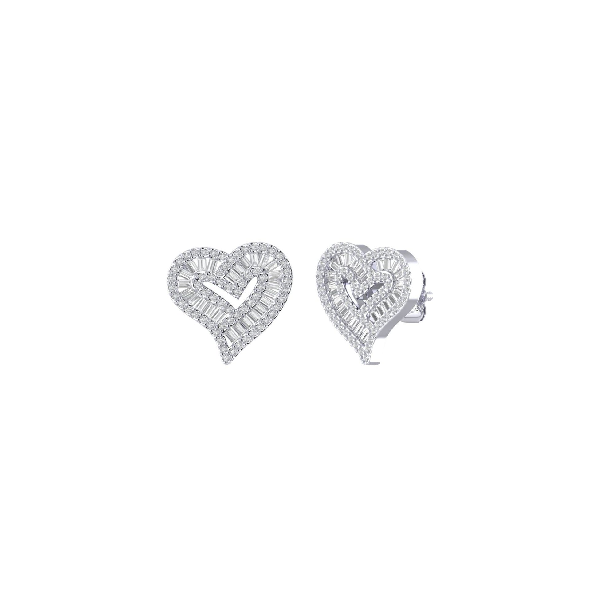 Sterling Silver Round Baguette Diamond Heart Stud Earring 1/2 Cttw