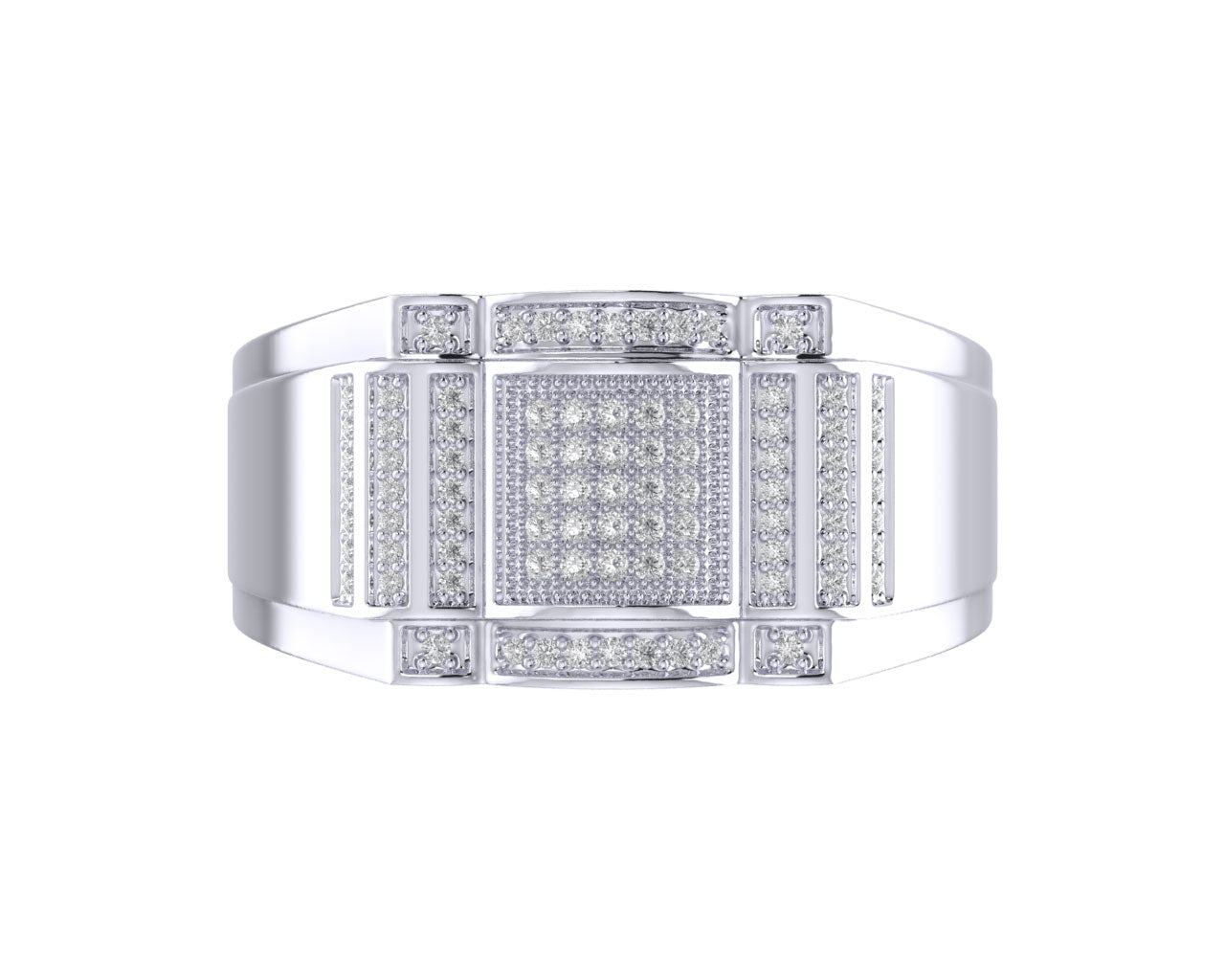 Sterling Silver Round Diamond Square Designer SZ 10 Mens Ring 1/4 Cttw
