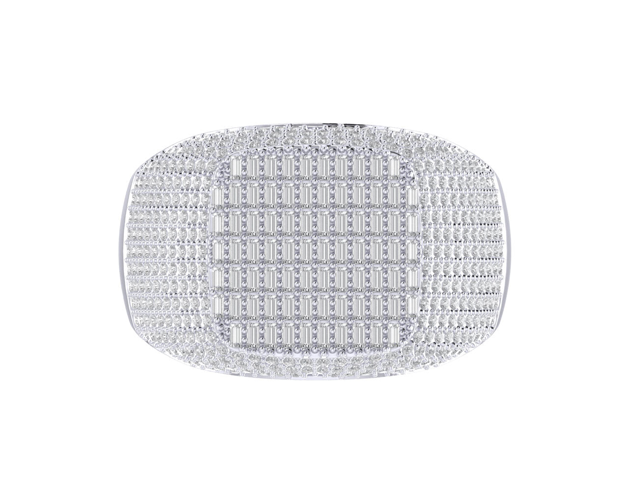This fully covered diamond men's ring is all about clean design and high shine. The top features a grid of baguette-cut diamonds, perfectly aligned for a sleek, modern aesthetic, while the sides are flooded with rows of round-cut diamonds to maximize sparkle. Its smooth, low-profile shape offers luxury without being bulkyperfect for everyday flex or a sharp formal finish.
