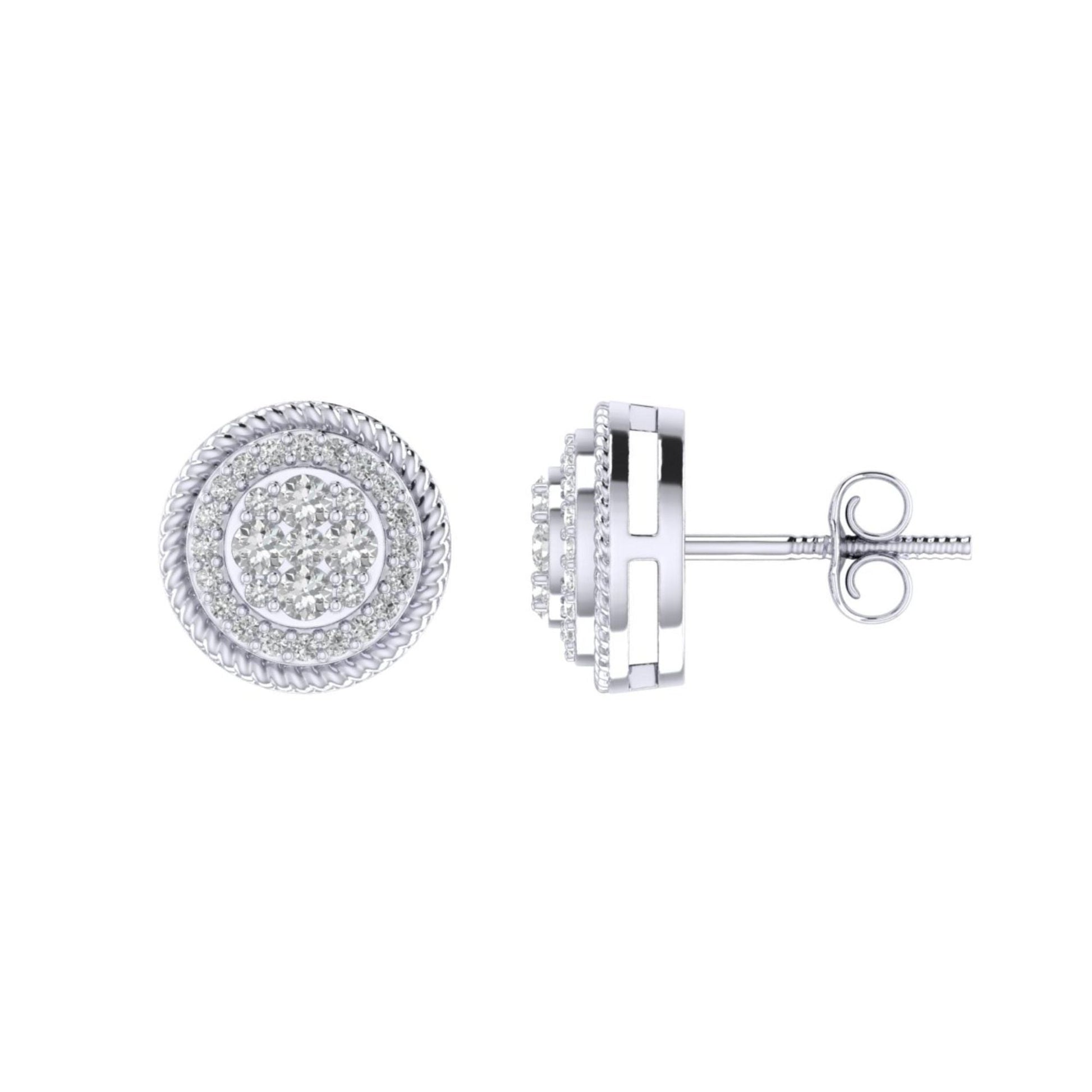 Sterling Silver Round Diamond Circle Shape Designer Stud Earring RP 1/3 Cttw