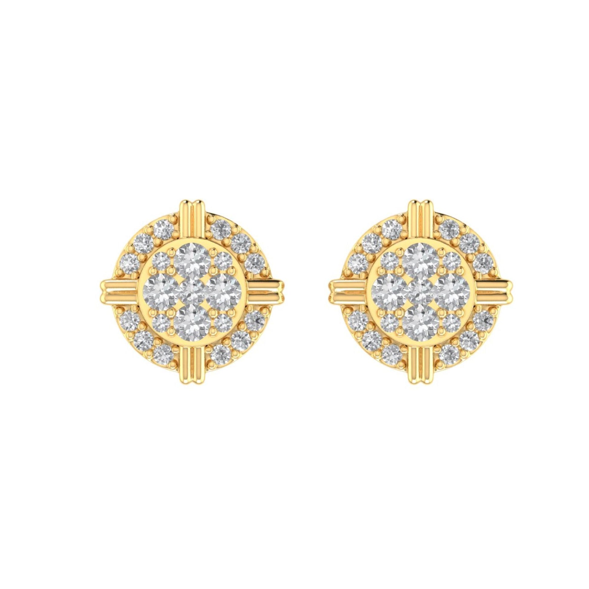 Sterling Silver Round Diamond Cushion Shape Designer Stud Earring RP+GP 1/4 Cttw