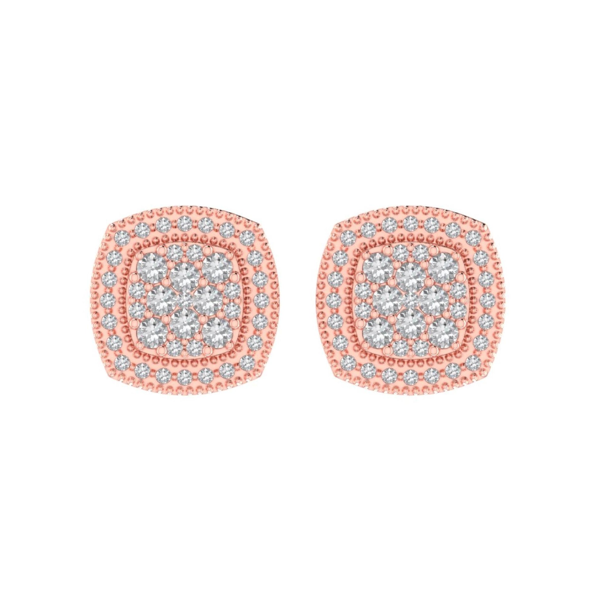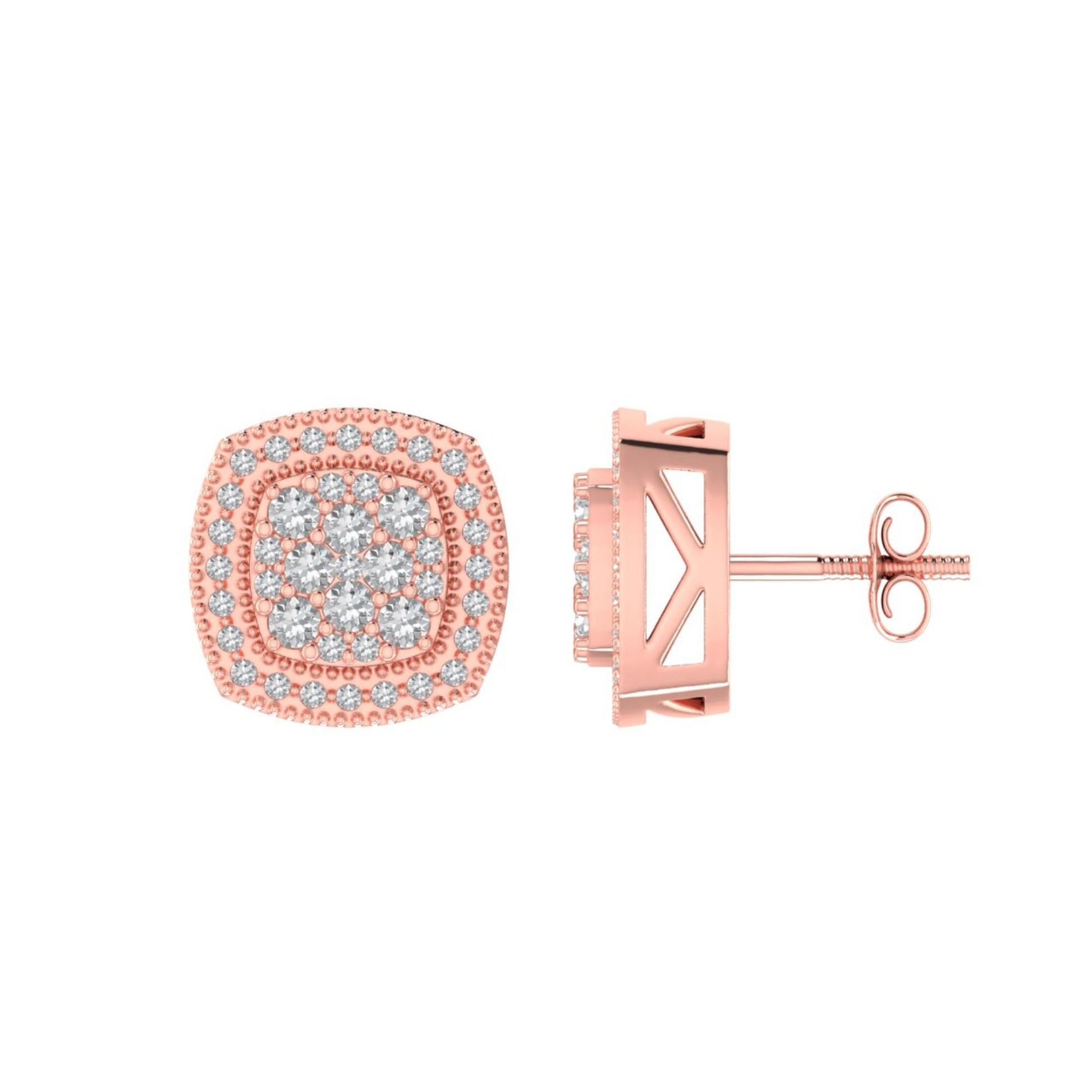 Sterling Silver Round Diamond Square Shape Designer Stud Earring RP+PP 1/2 Cttw