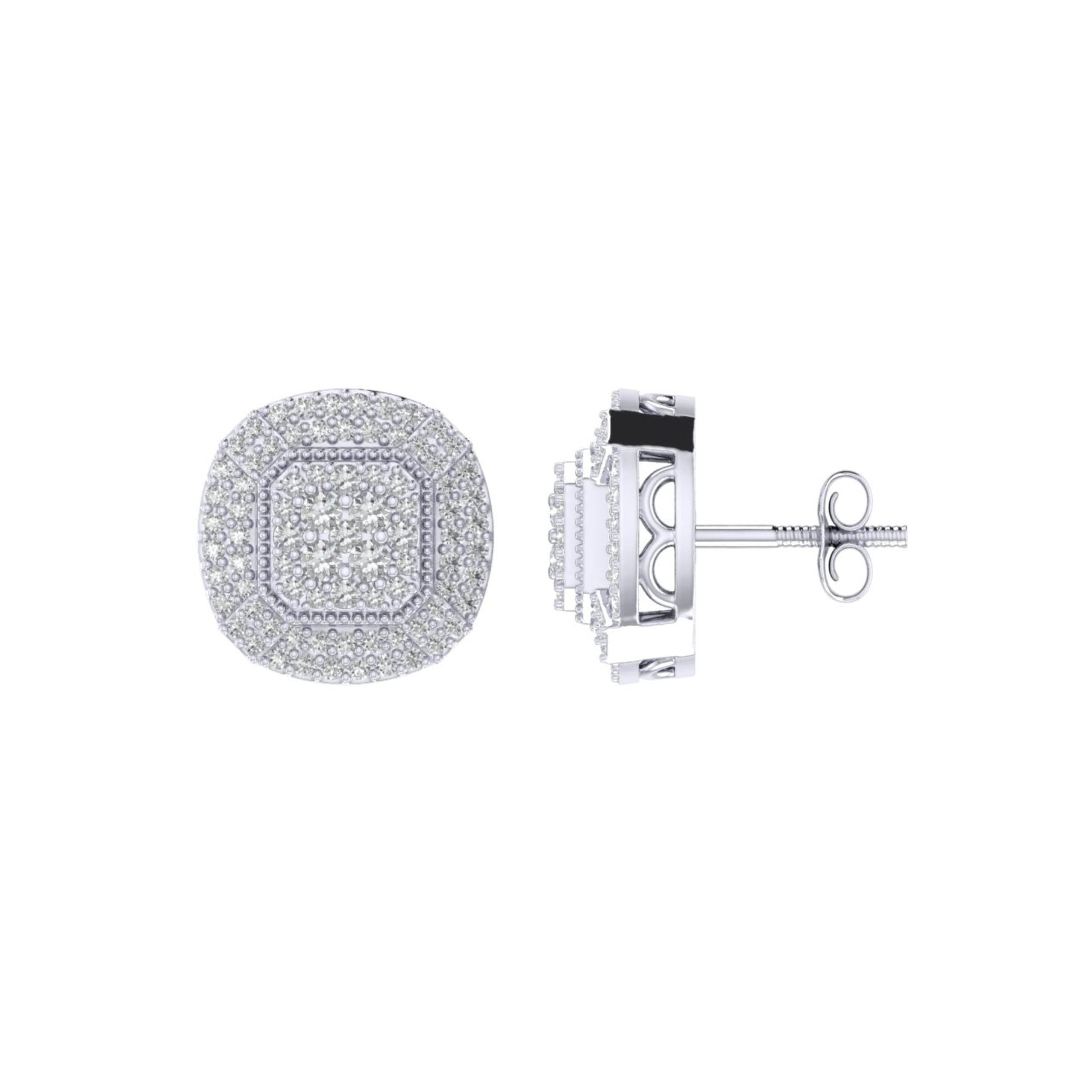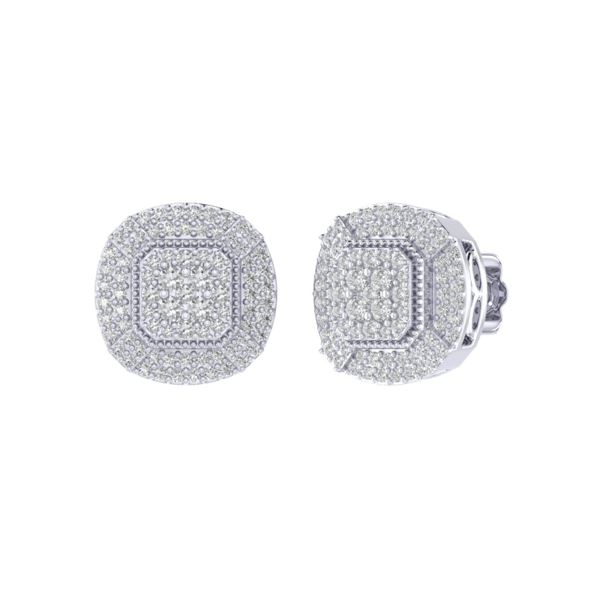 Sterling Silver Round Diamond Cushion Shape Designer Stud Earring RP 5/8 Cttw