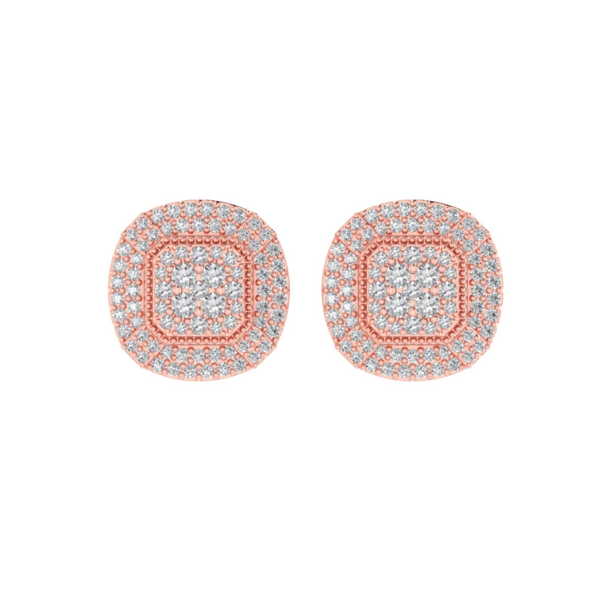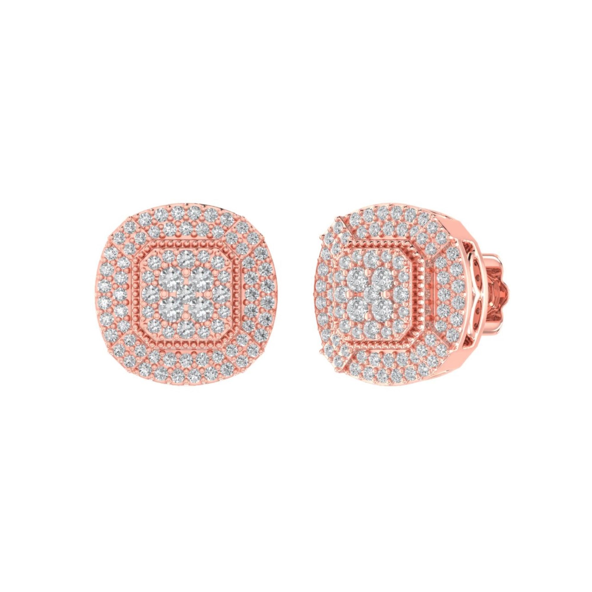 Sterling Silver Round Diamond Cushion Shape Designer Stud Earring RP+PP 3/4 Cttw