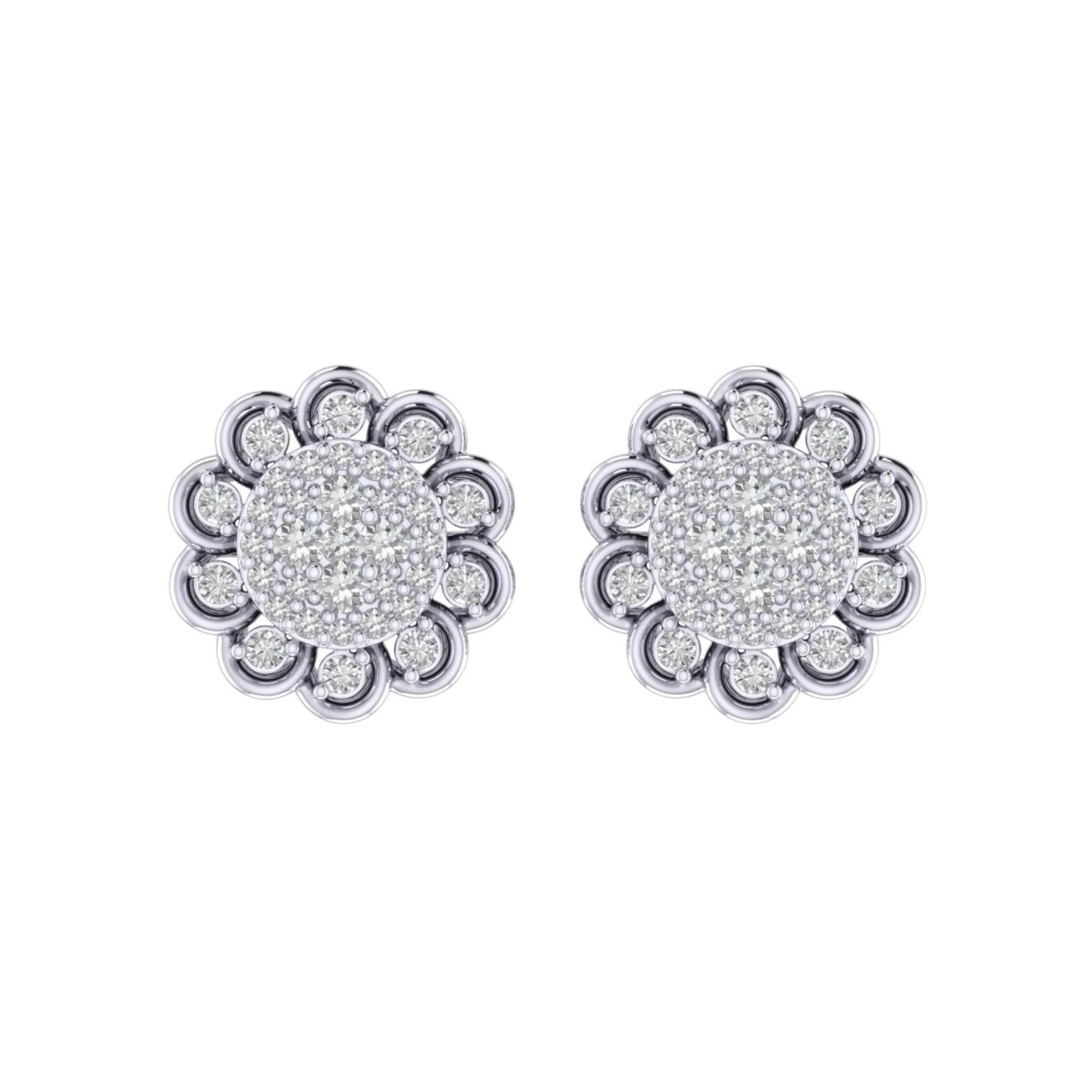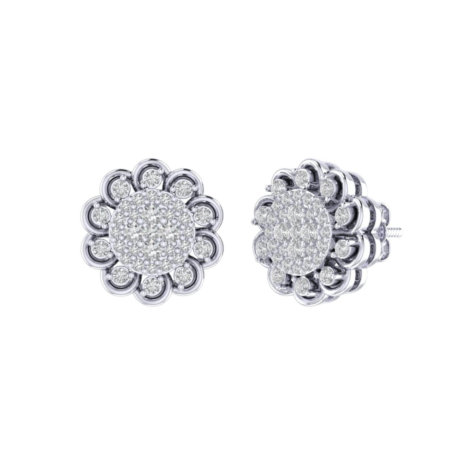 Sterling Silver Round Diamond Flower Designer Stud Earring RP 1/2 Cttw