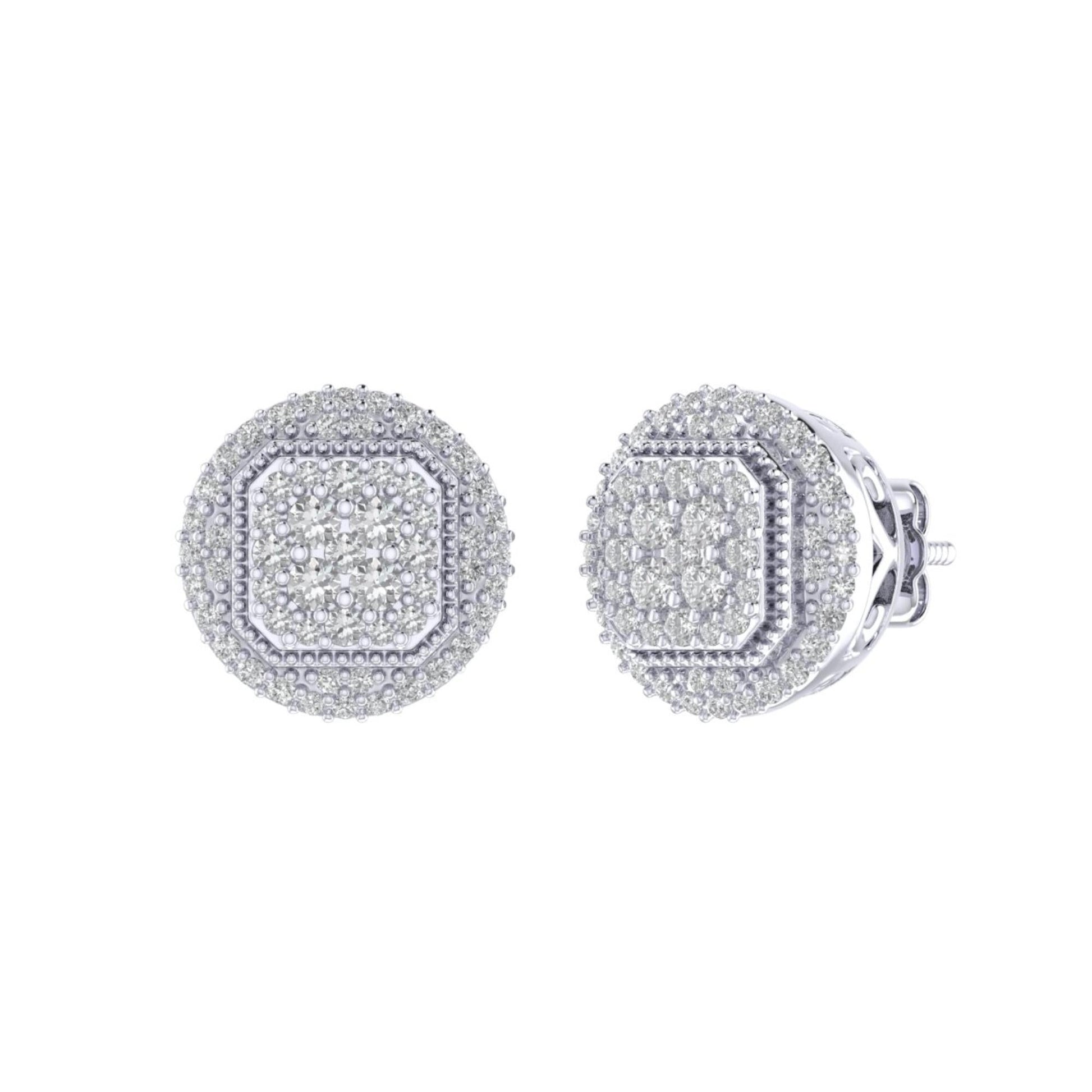 Sterling Silver Round Diamond Circle Shape Designer Stud Earring RP 1/2 Cttw