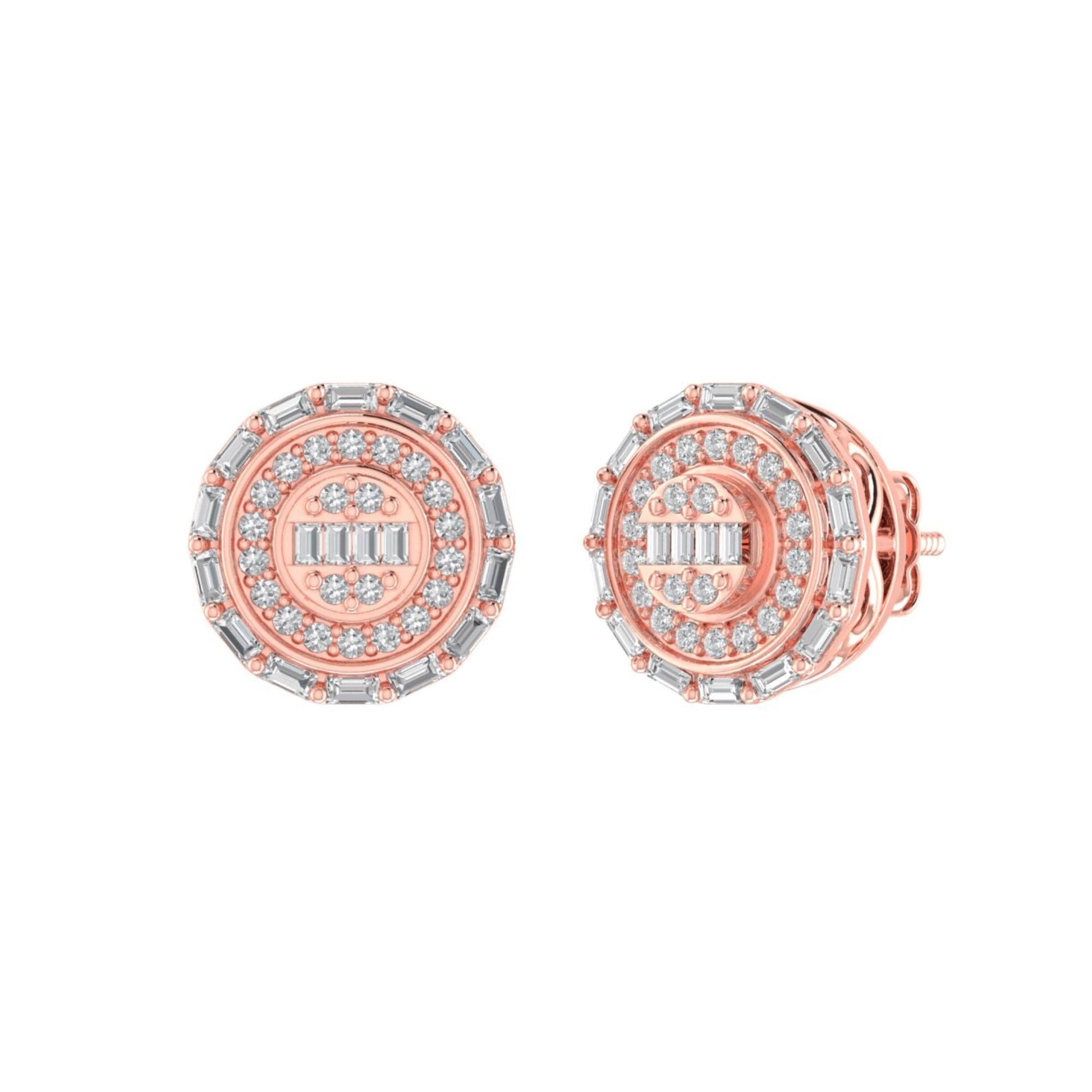 Sterling Silver Round Baguette Diamond Circle Shape Designer Stud Earring RP+PP 3/8 Cttw
