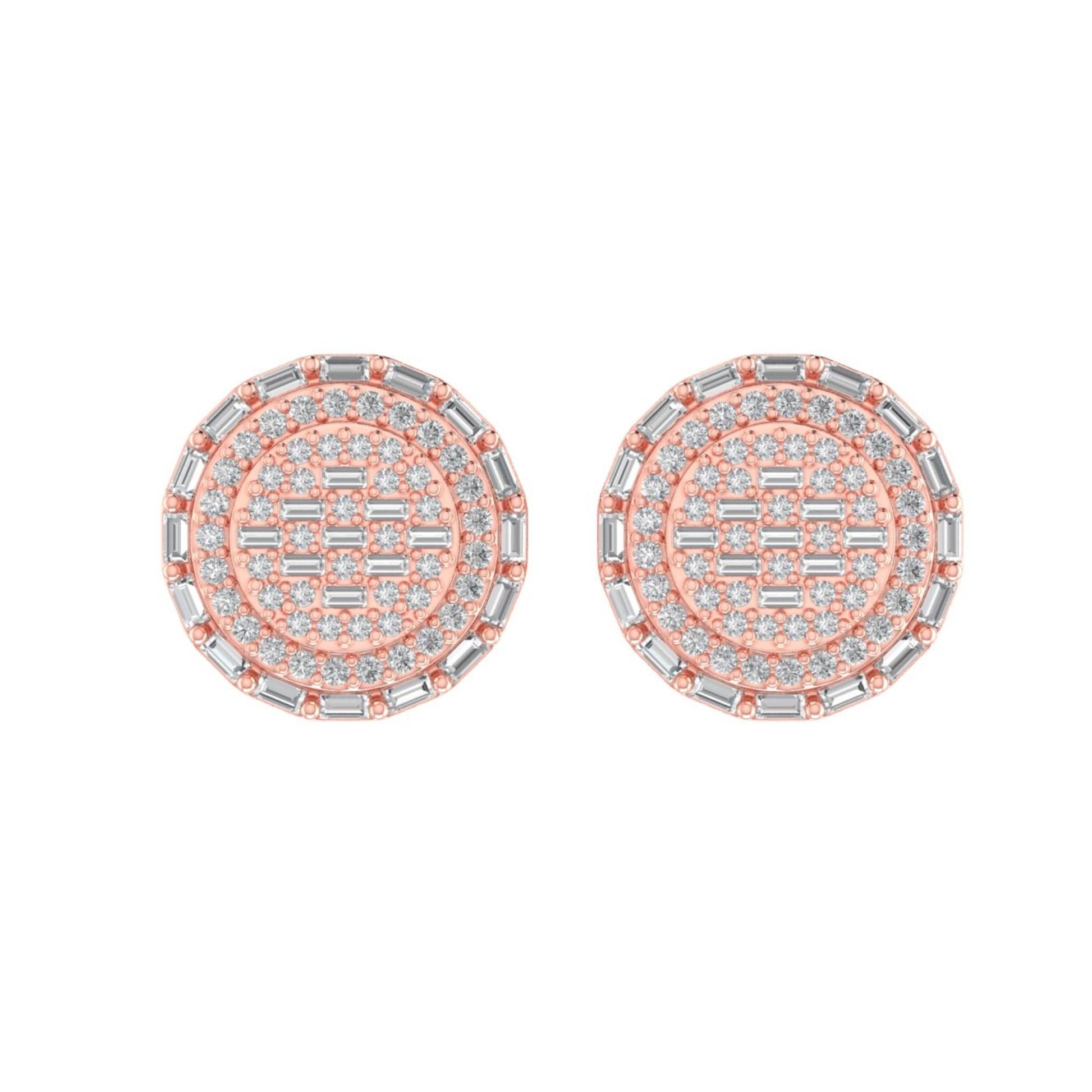 Sterling Silver Round Baguette Diamond Circle Designer Stud Earring RP+PP 1/2 Cttw