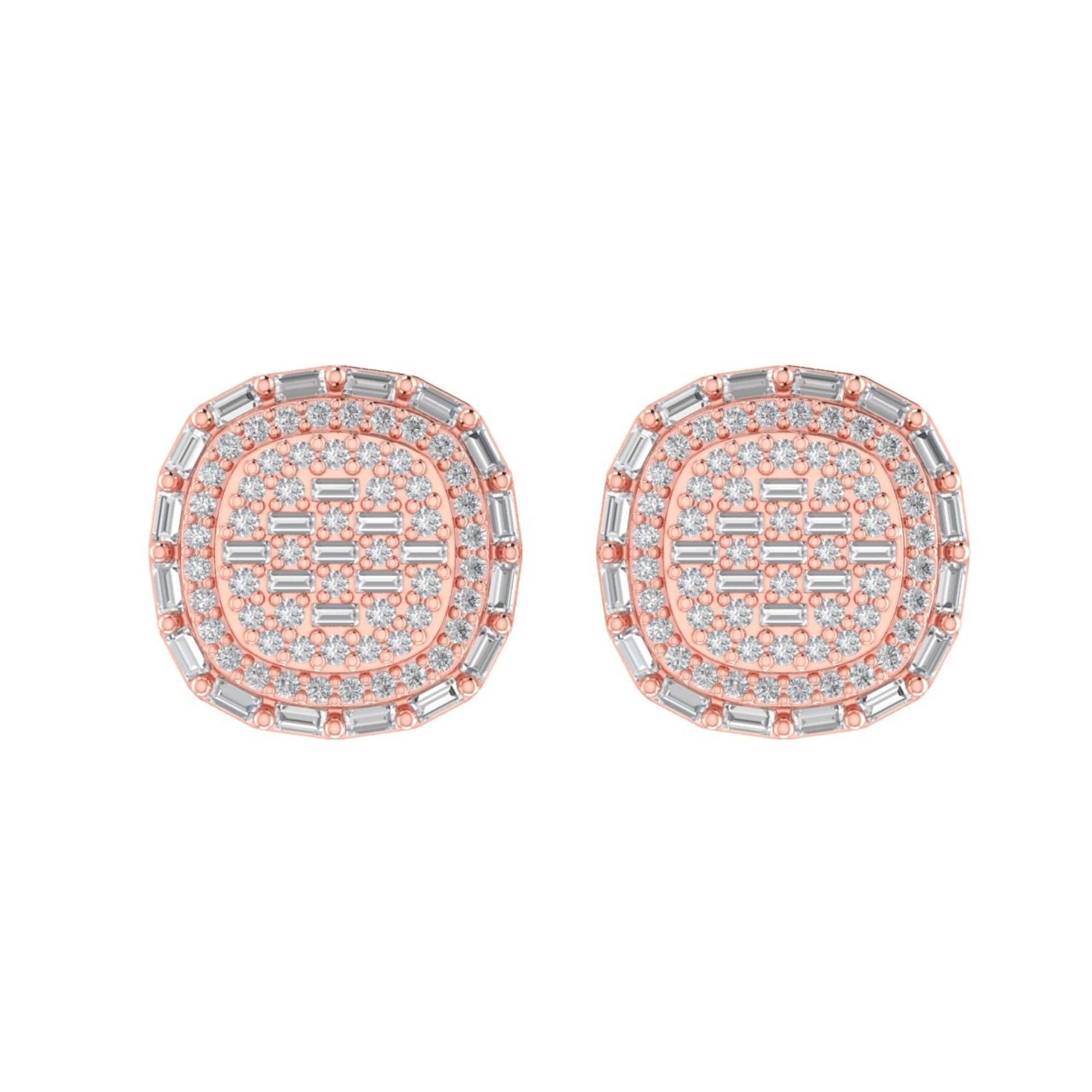 Sterling Silver Round Baguette Diamond Square Designer Stud Earring RP+PP 5/8 Cttw