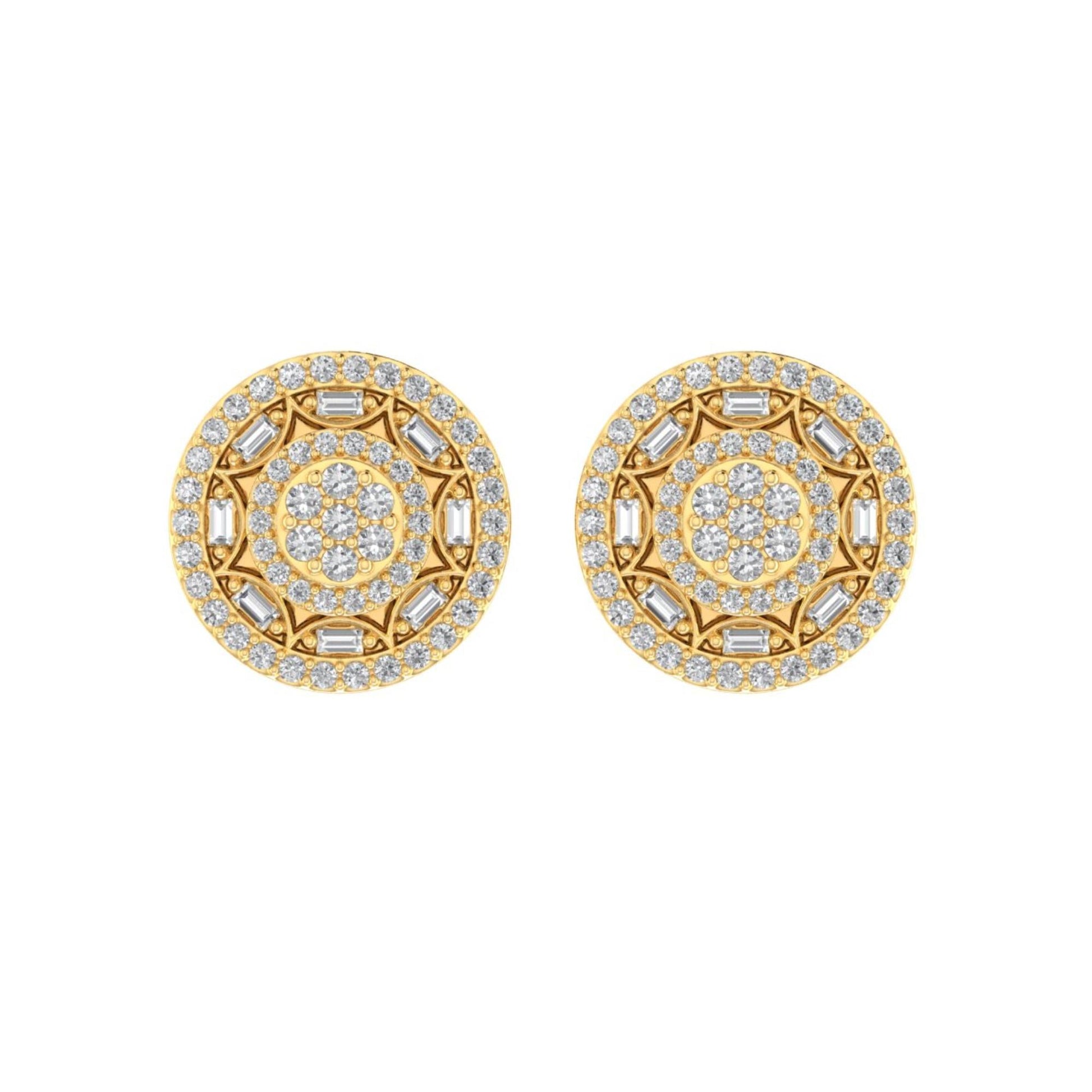 Sterling Silver Round Baguette Diamond Circle Flower Designer Stud Earring RP+GP 1/2 Cttw