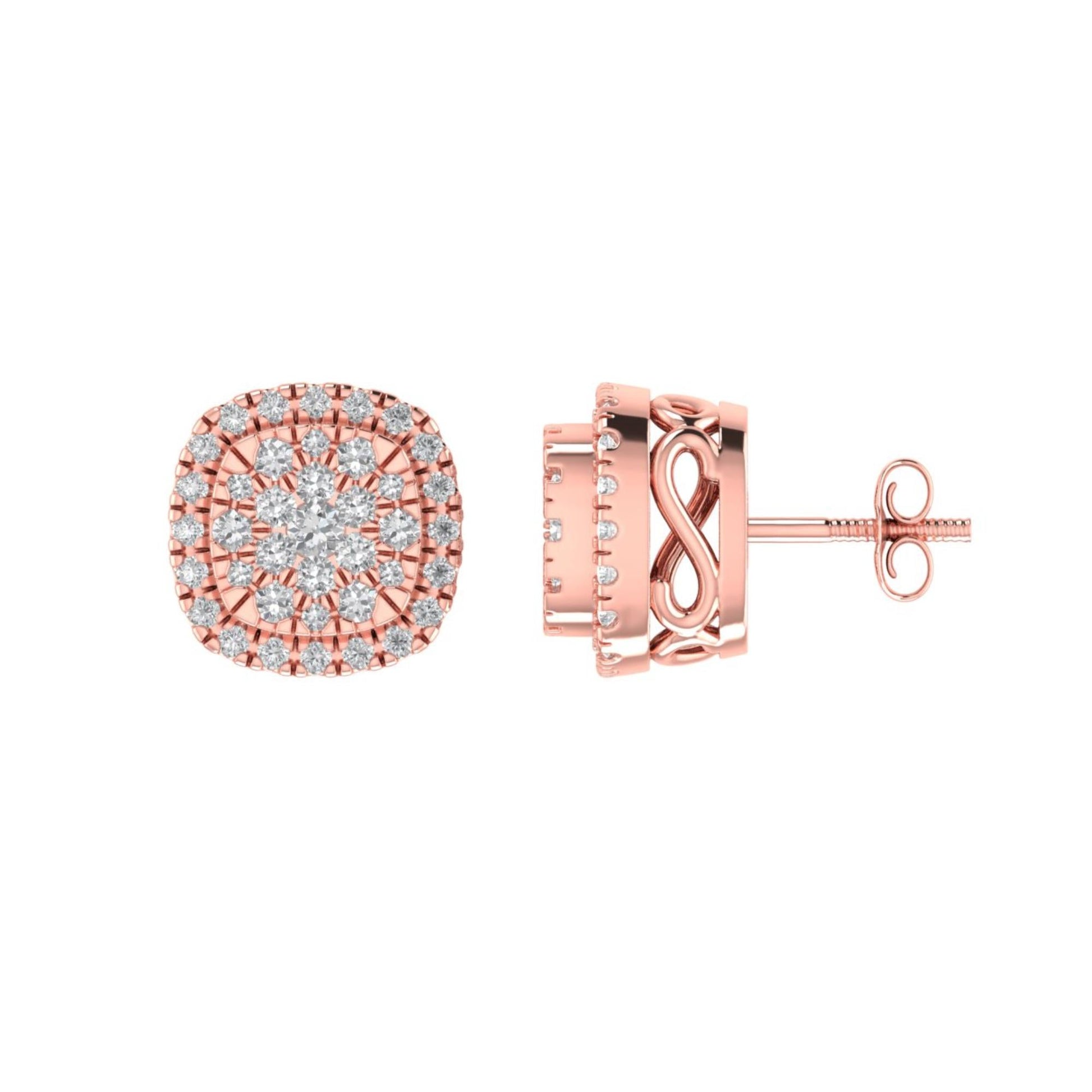Sterling Silver Round Diamond Square Designer Stud Earring RP+PP 3/8 Cttw