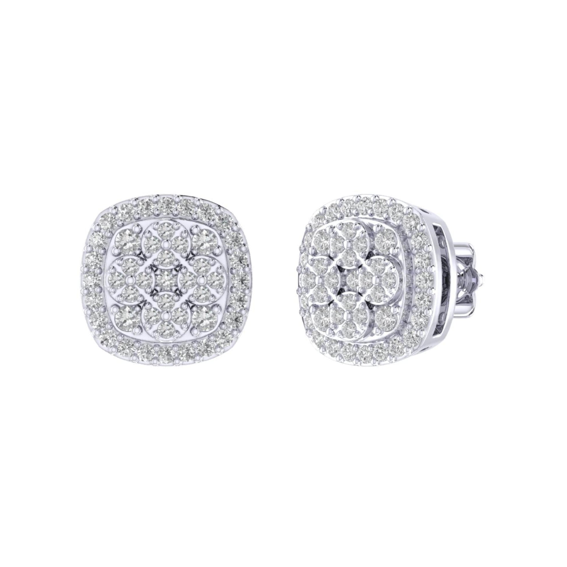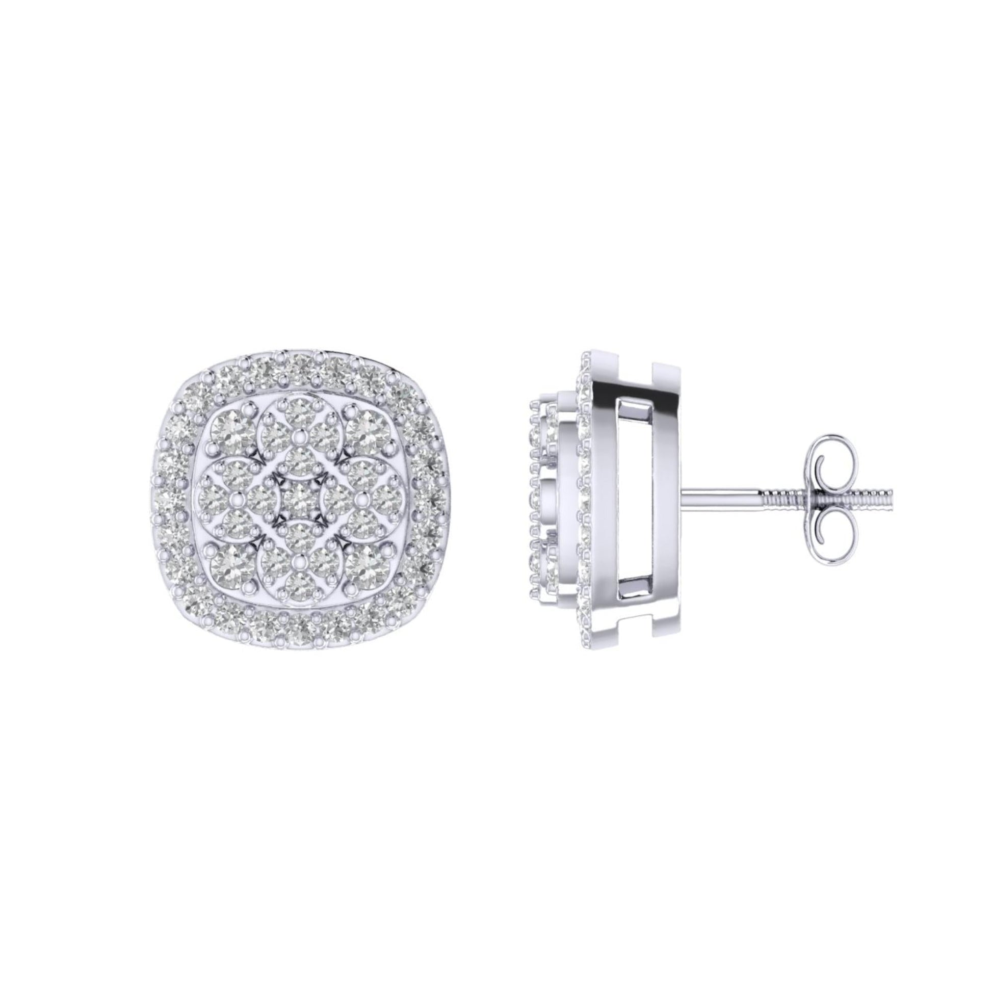 Sterling Silver Round Diamond Cushion Designer Stud Earring RP 1/3 Cttw