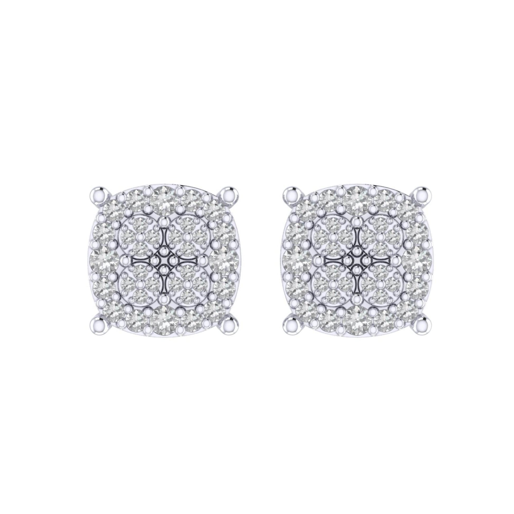 Sterling Silver Round Diamond Cushion Designer Stud Earring RP 1/2 Cttw