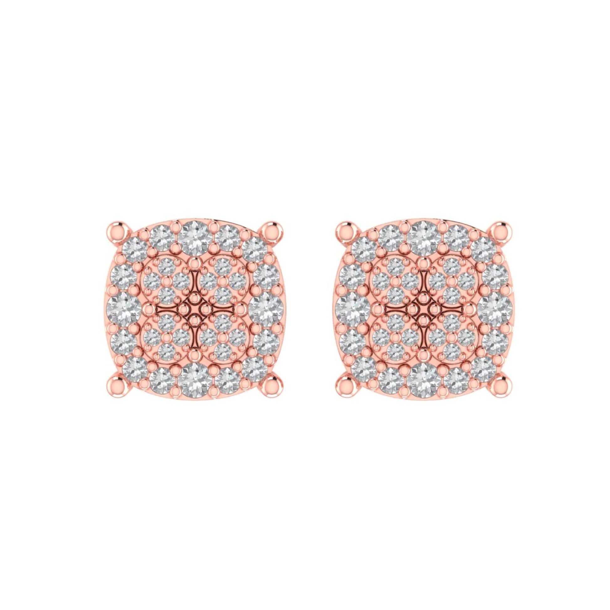 Sterling Silver Round Diamond Cushion Designer Stud Earring RP+PP 3/8 Cttw