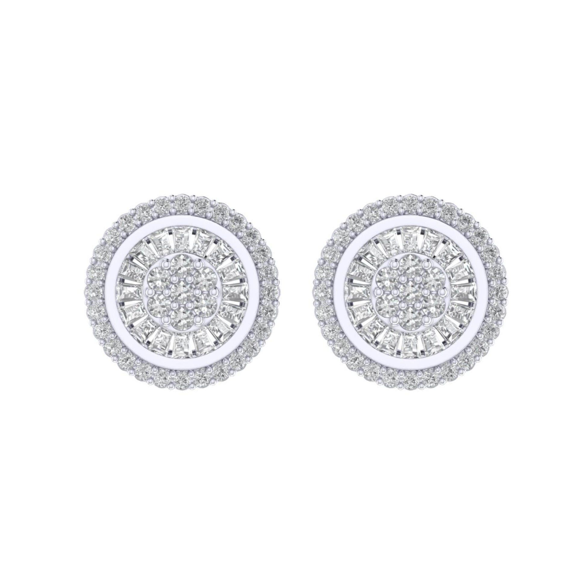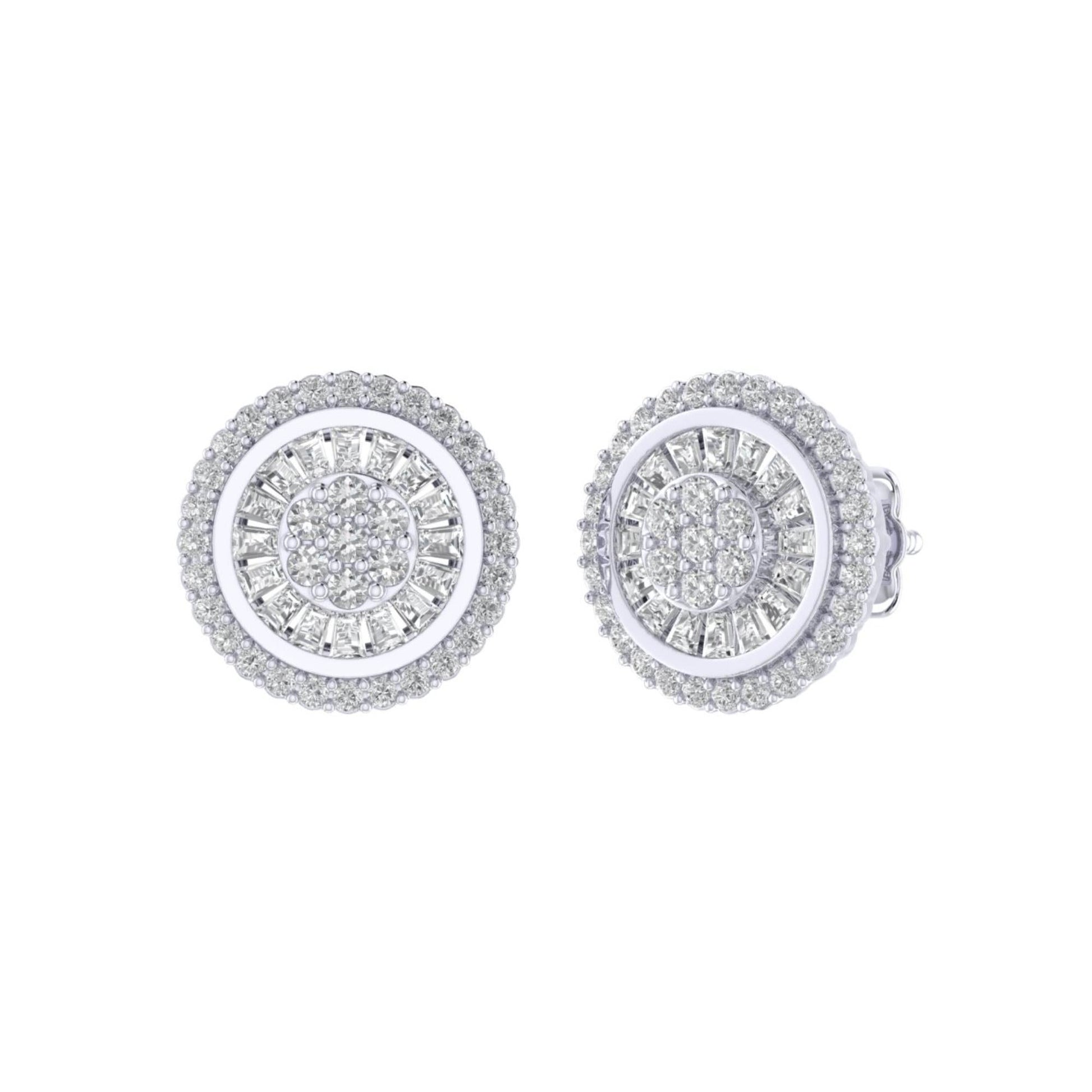 Sterling Silver Round Baguette Diamond Circle Shape Designer Stud Earring RP 1/2 Cttw