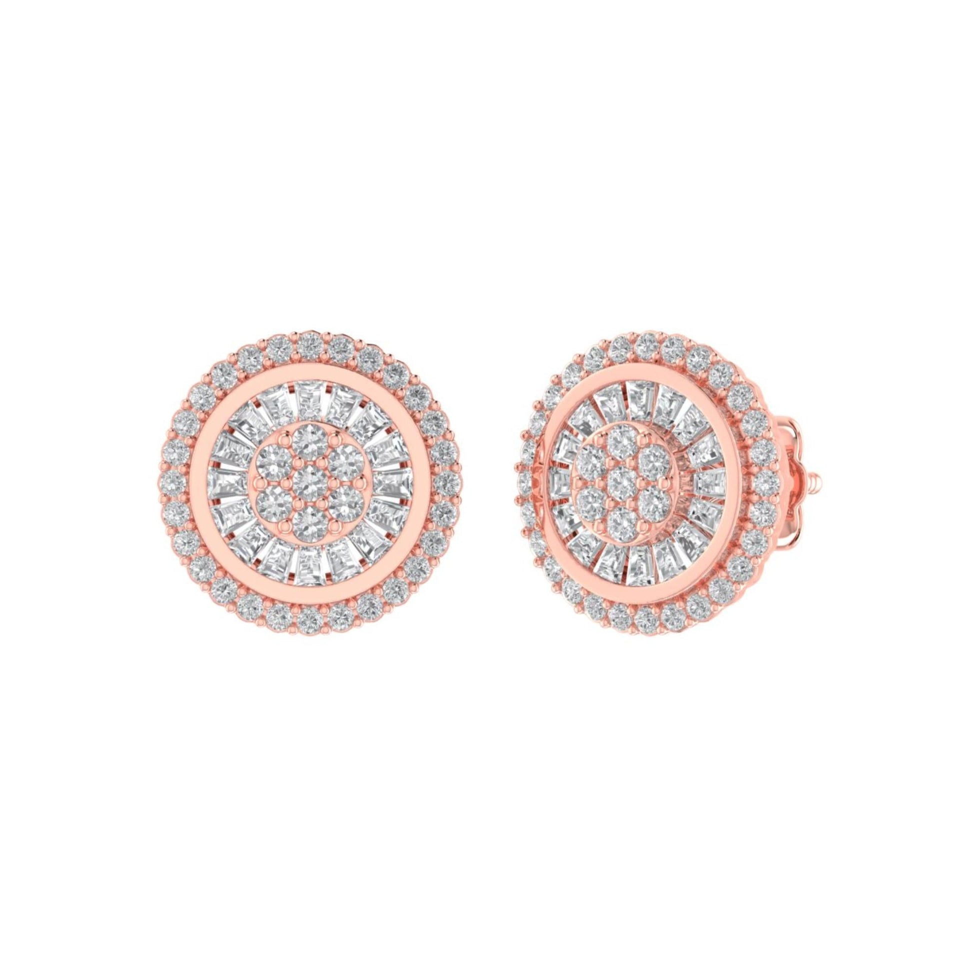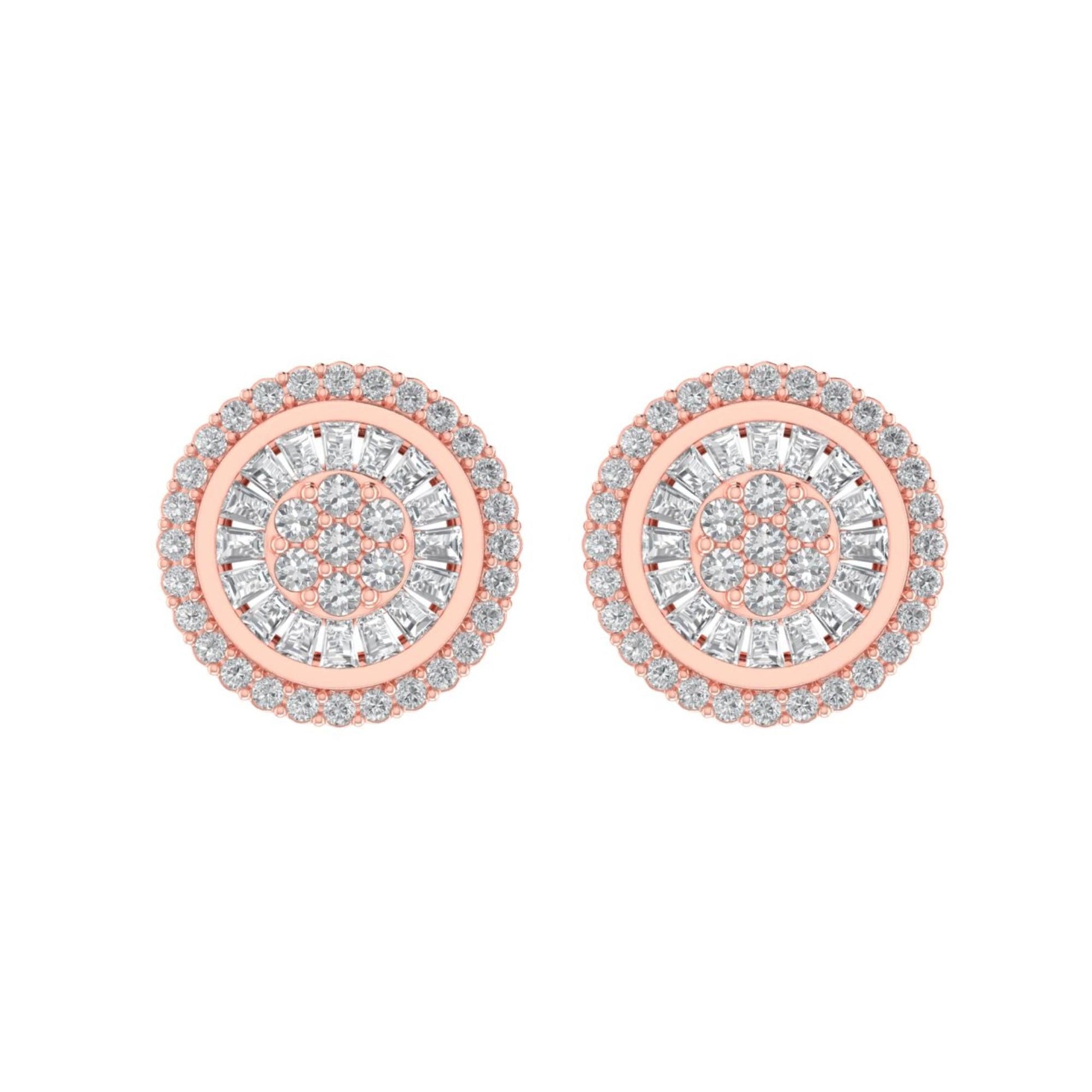 Sterling Silver Round Baguette Diamond Circle Shape Designer Stud Earring RP+PP 1/2 Cttw