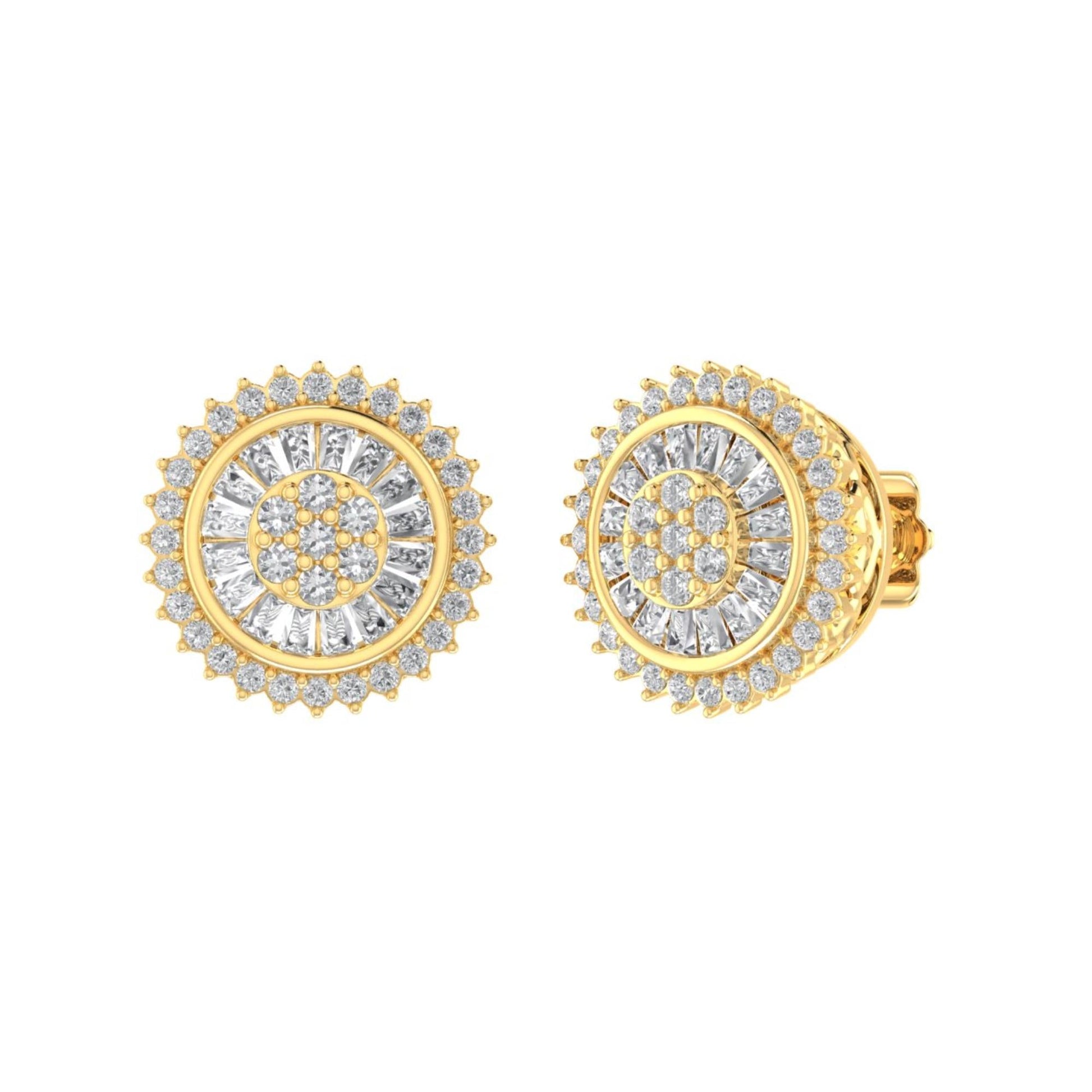Sterling Silver Round Baguette Diamond Flower Designer Stud Earring RP+GP 1/2 Cttw