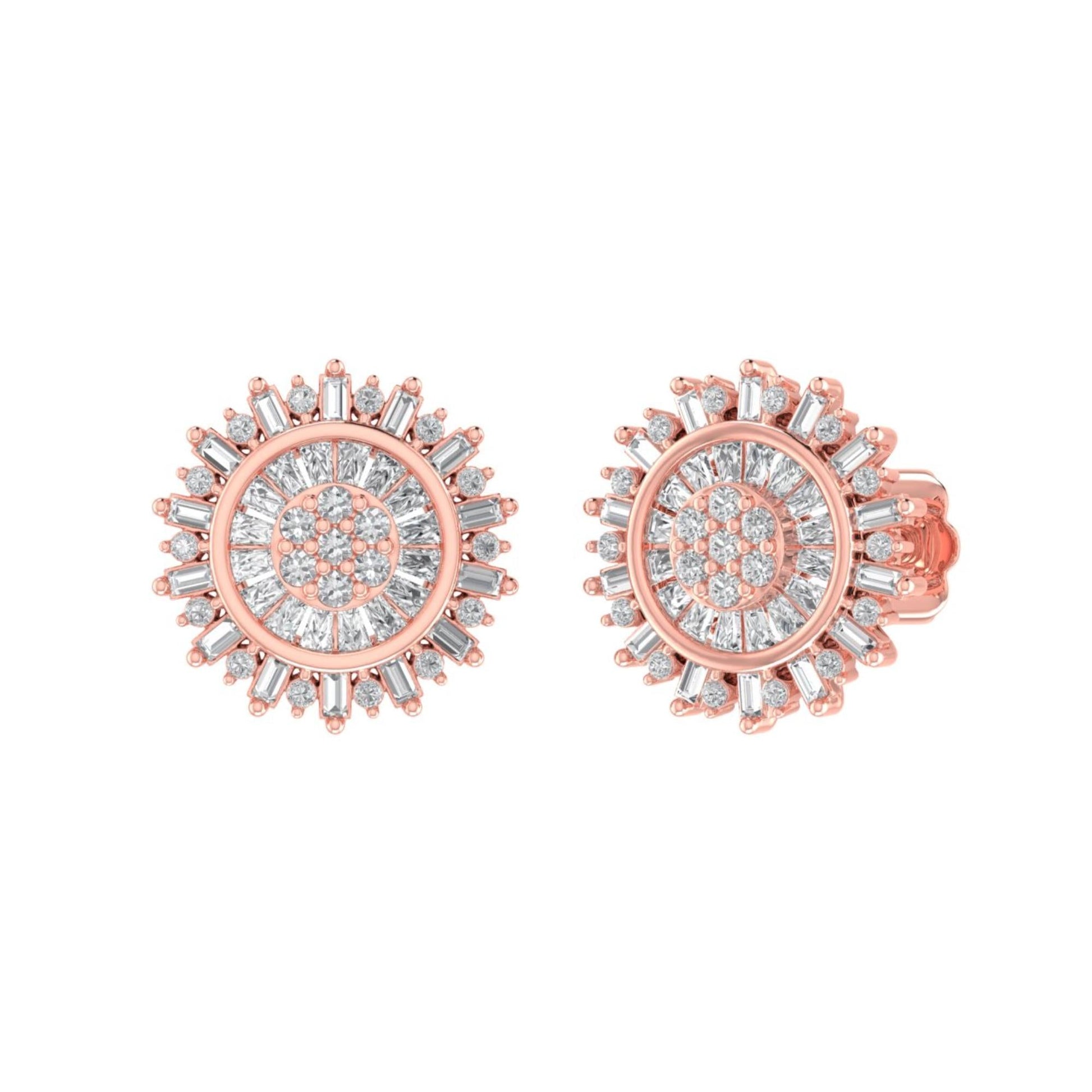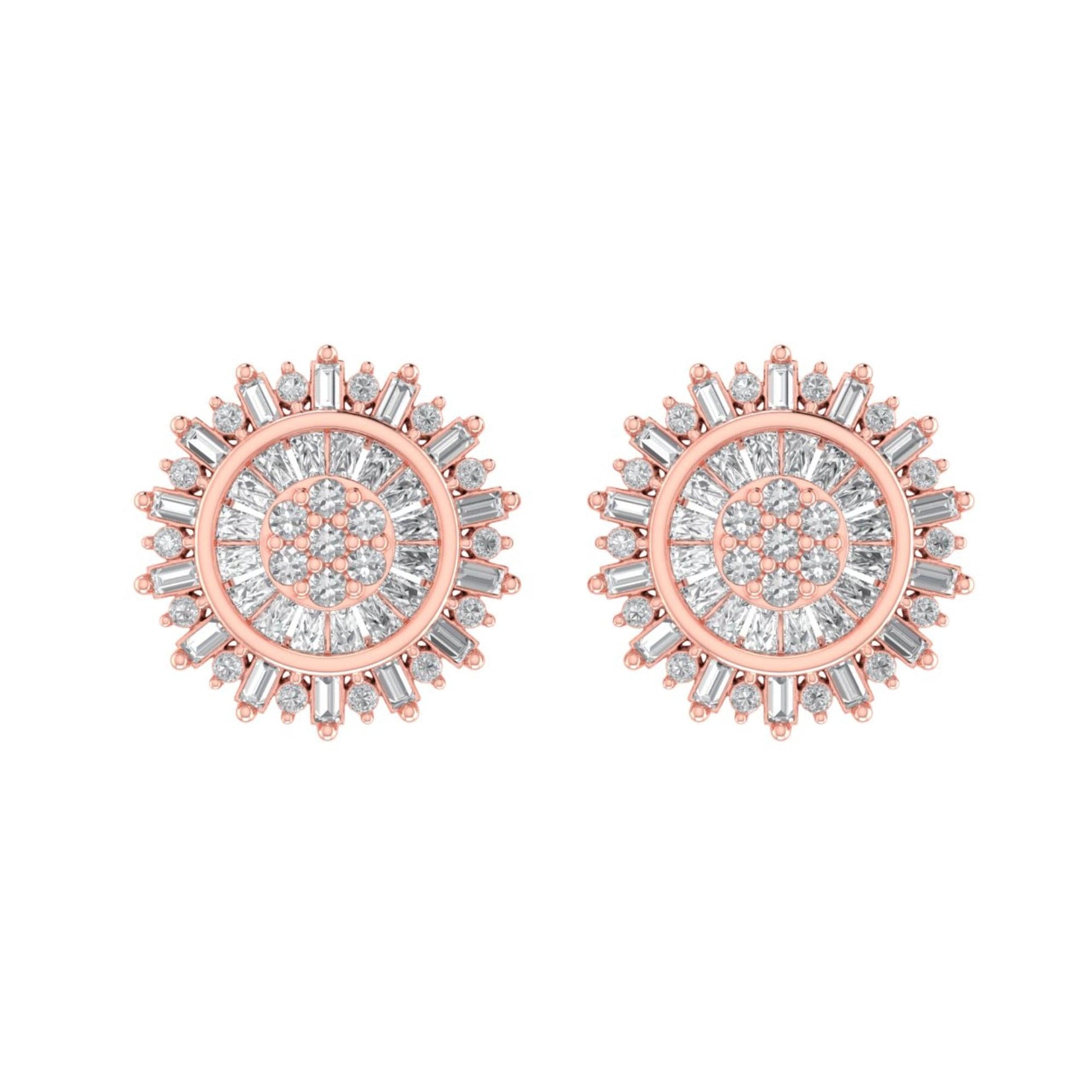 Sterling Silver Round Baguette Diamond Round Flower Designer Stud Earring RP+PP 3/8 Cttw