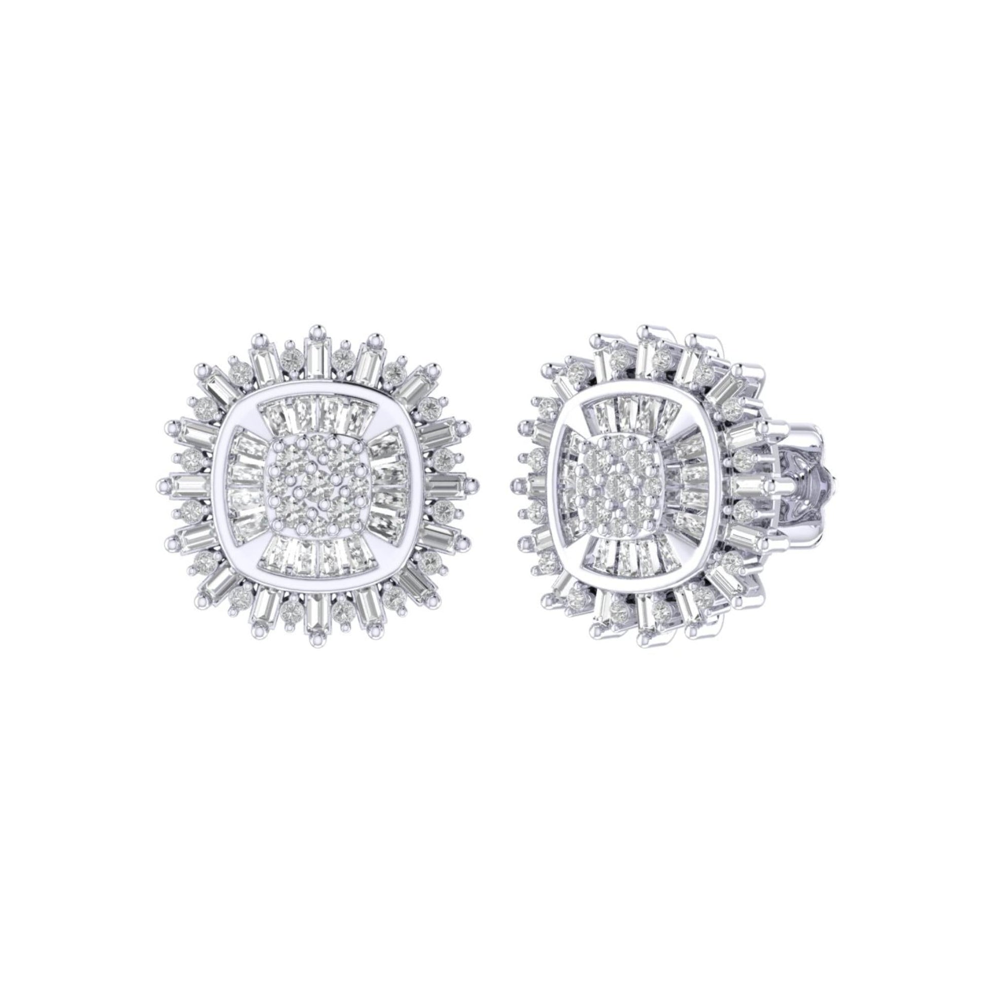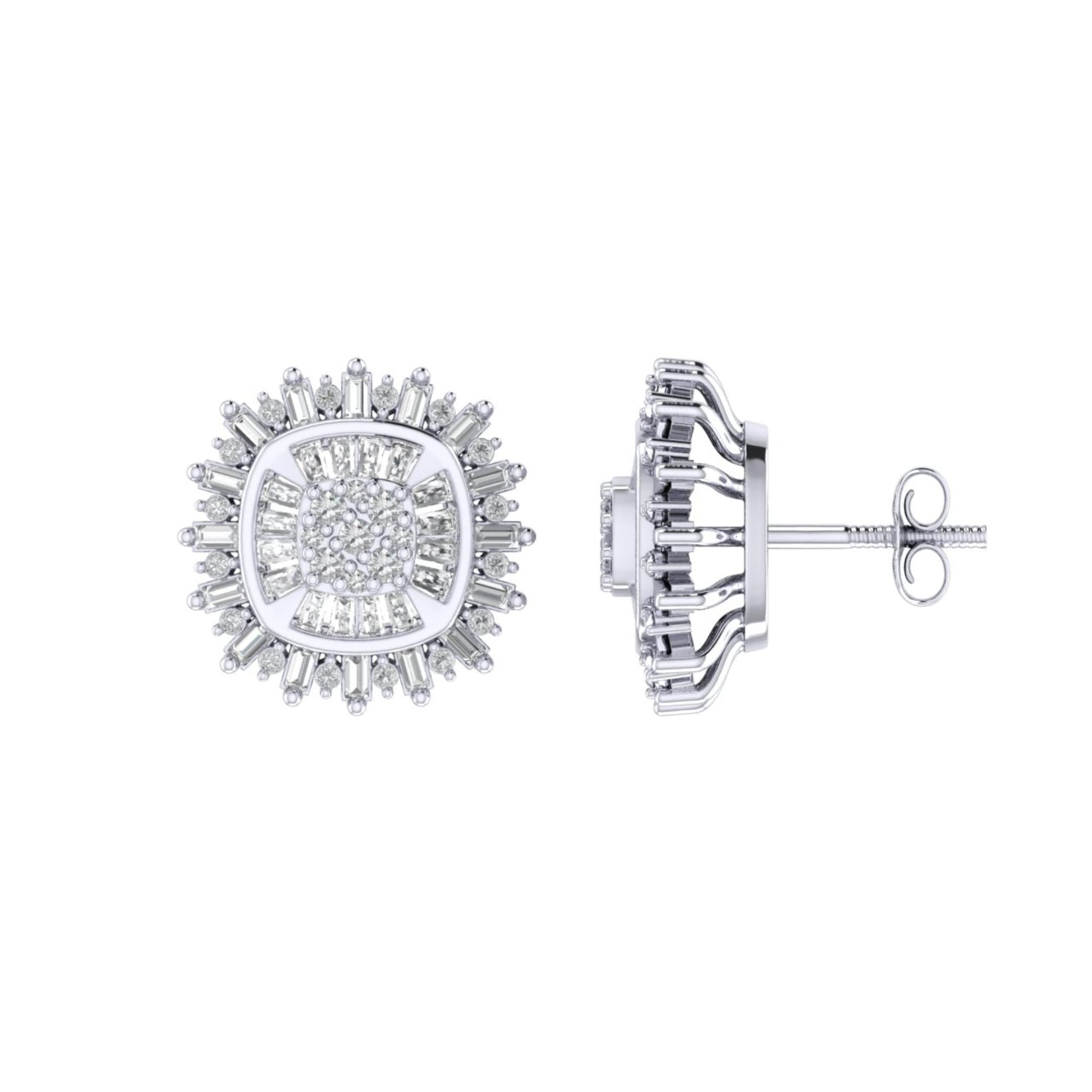 Sterling Silver Round Baguette Diamond Square Shape Designer Stud Earring RP 1/2 Cttw