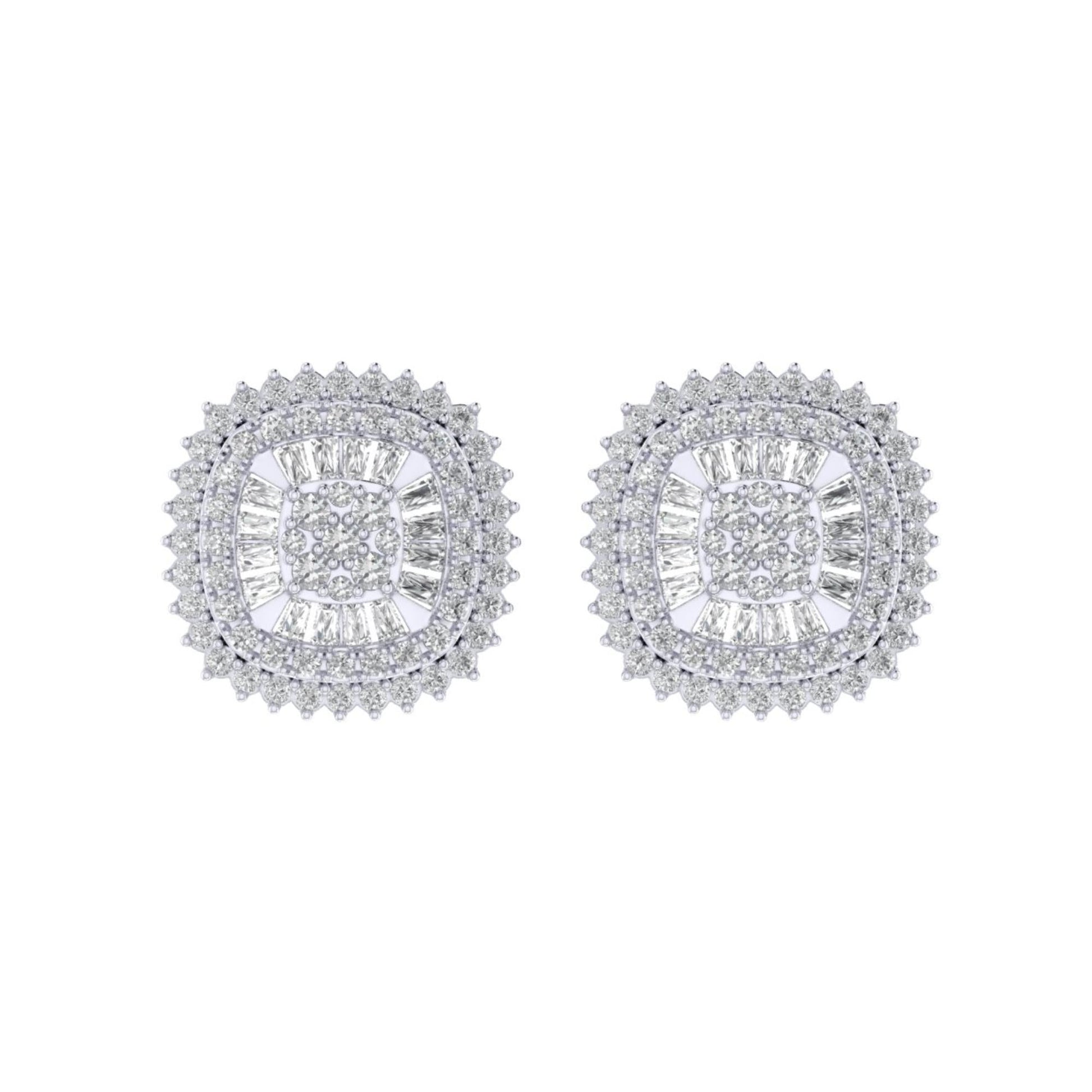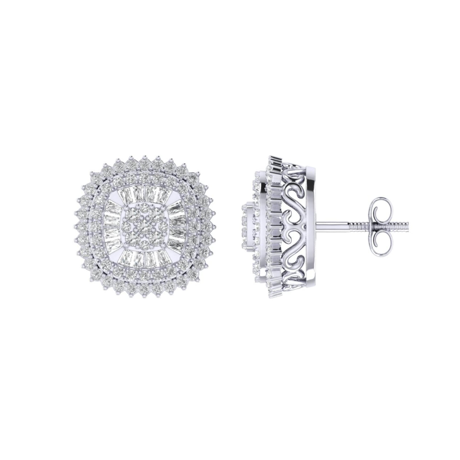 Sterling Silver Round Baguette Diamond Square Shape Designer Stud Earring RP 5/8 Cttw