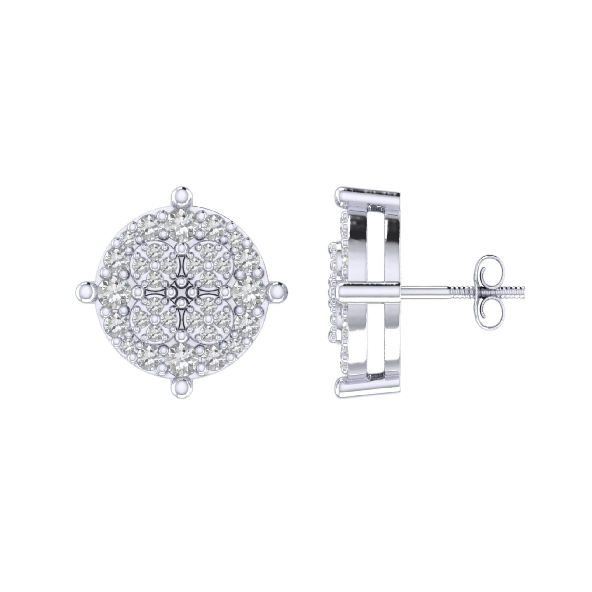 Sterling Silver Round Diamond Circle Shape Designer Stud Earring RP 3/8 Cttw
