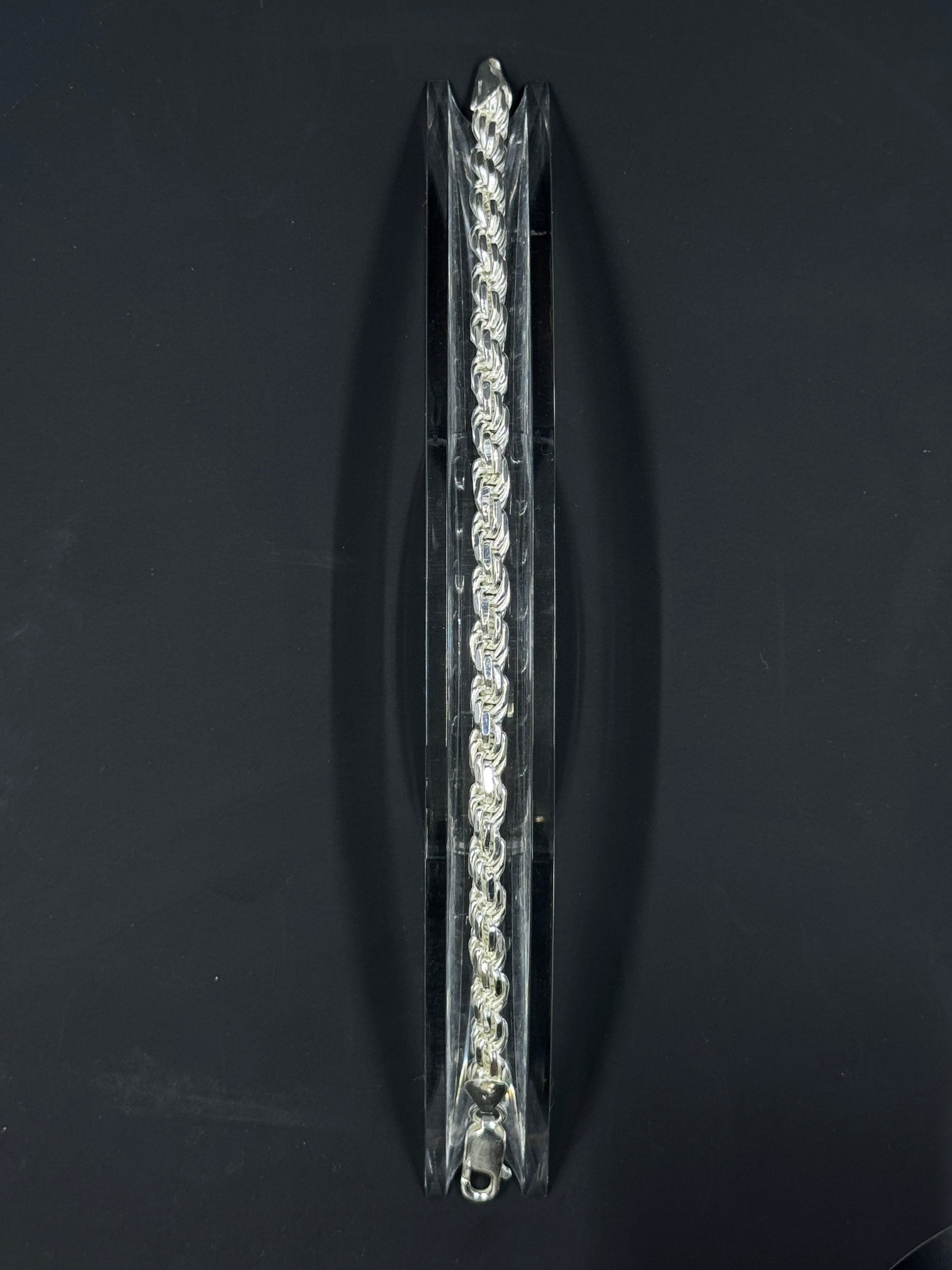 A bold classic for the wrist — this 5.6mm rope chain bracelet is made in solid .925 sterling silver and finished with anti-tarnish technology , ensuring long-lasting shine with minimal upkeep. Its substantial weight and intricate rope design make it a standout accessory that pairs perfectly with any style. Metal: Solid .925 Sterling Silver Width: 5.6mm Lengths Available: Multiple (select variant) Finish: Anti-tarnish technology for lasting shine Clasp: Sturdy, secure closure Designed for everyday wear and statement occasions, this bracelet brings both durability and style to your collection. ✨ Classic. Bold. Built to shine.