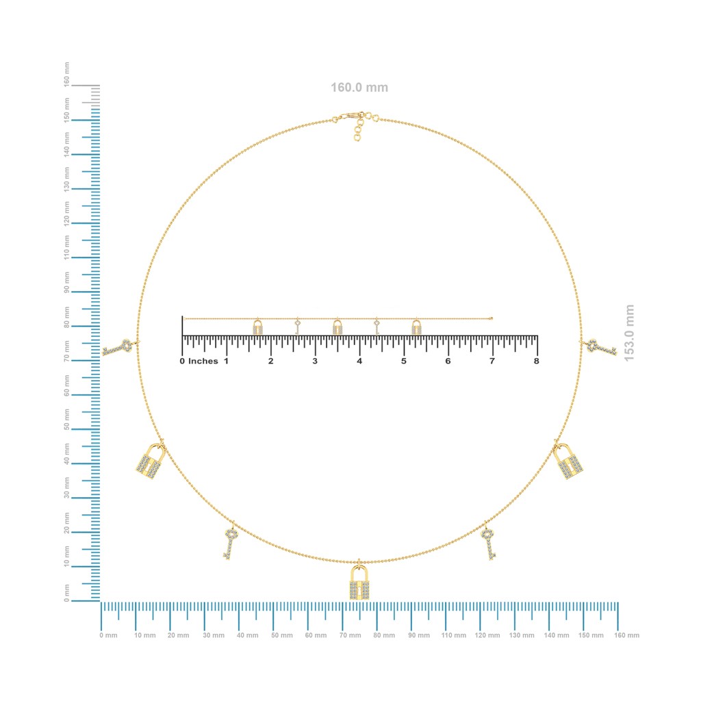 14K Yellow Gold Lock & Key Link Necklace Bracelet Jewelry Set 1/2 Cttw