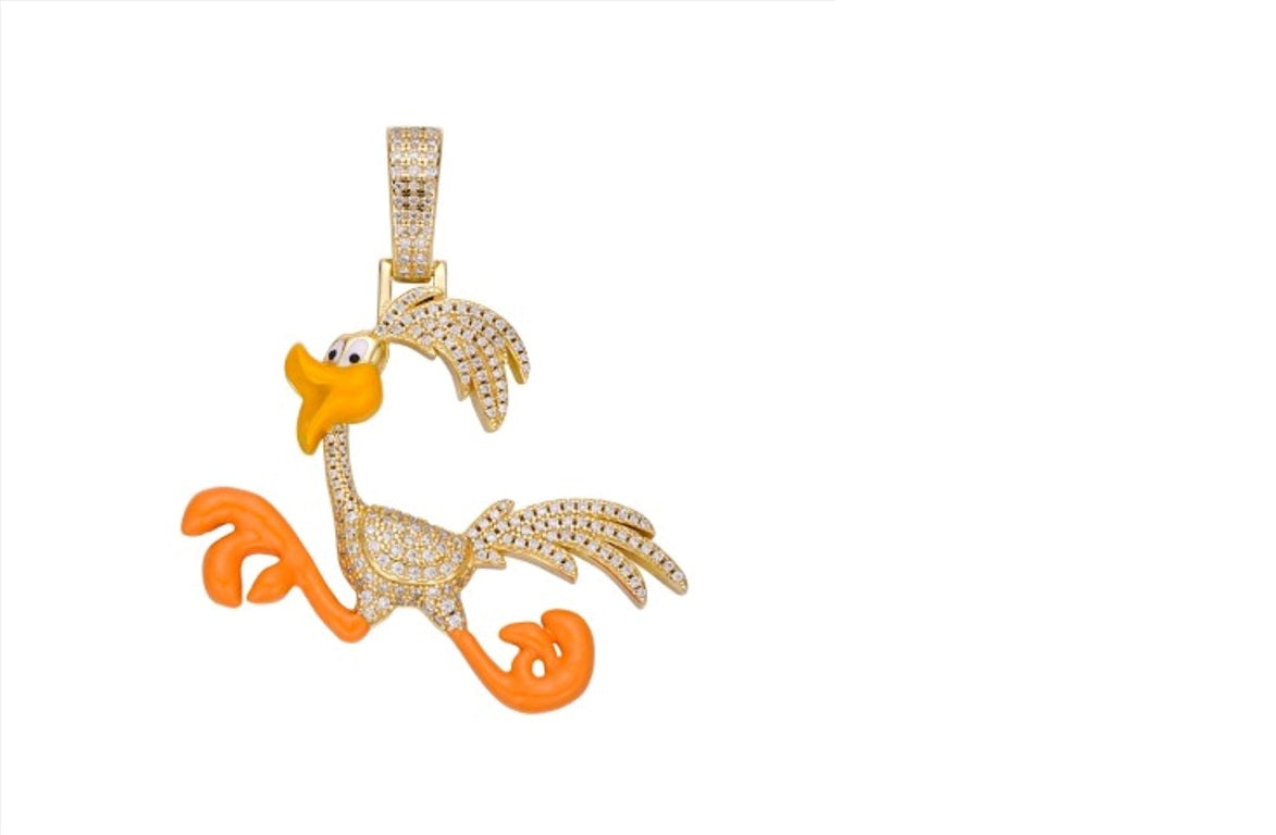 Sterling Silver Moissanite Enamel Bird Animal Pendant GP 7/8 Cttw